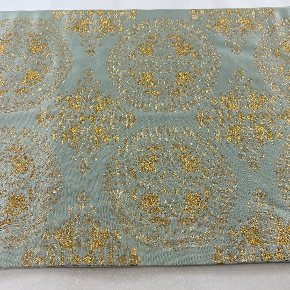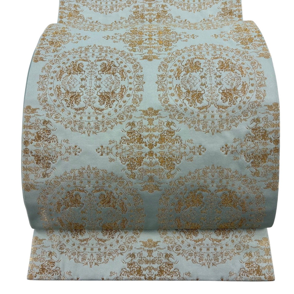 30%OFF 袋帯 秀品 七宝 花菱 金糸 箔 薄緑 六通 正絹 K30