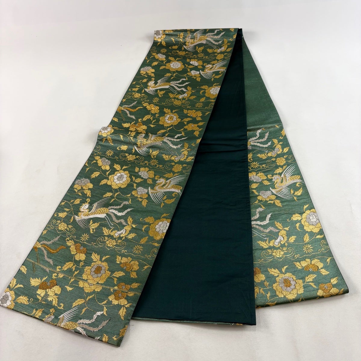 30%OFF 袋帯 秀品 花鳥 流水 箔 金糸 薄緑 六通 正絹 K30
