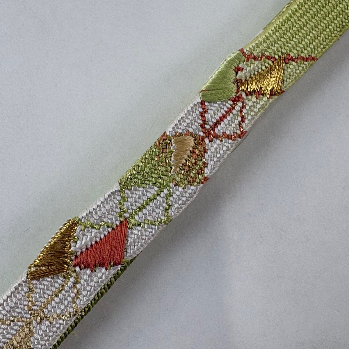【美品】 名古屋帯 秀品 夏帯 草花 色紙 金銀糸 薄緑 正絹