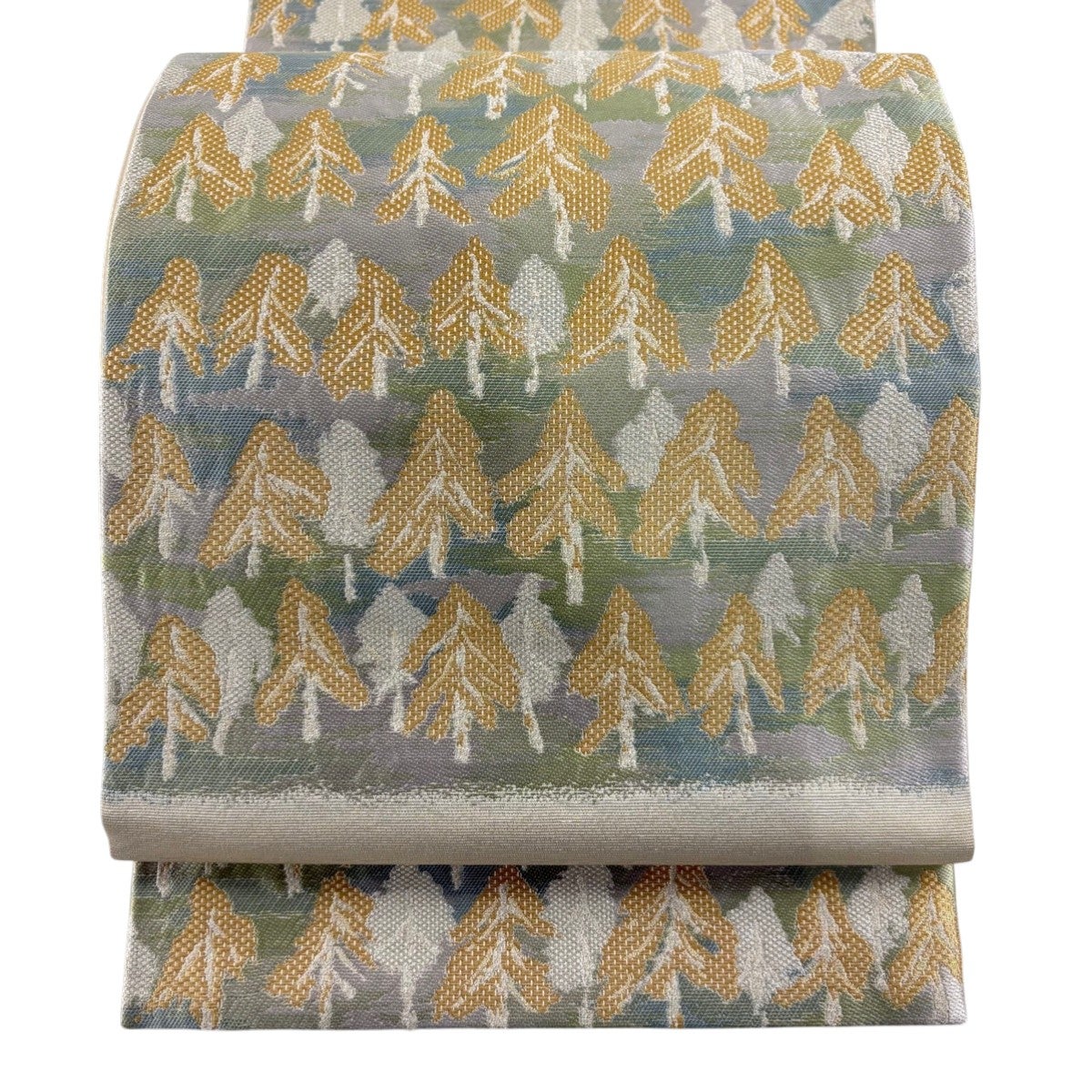 【美品】 袋帯 名品 松竹梅 華文 金糸 箔 薄緑 六通 正絹