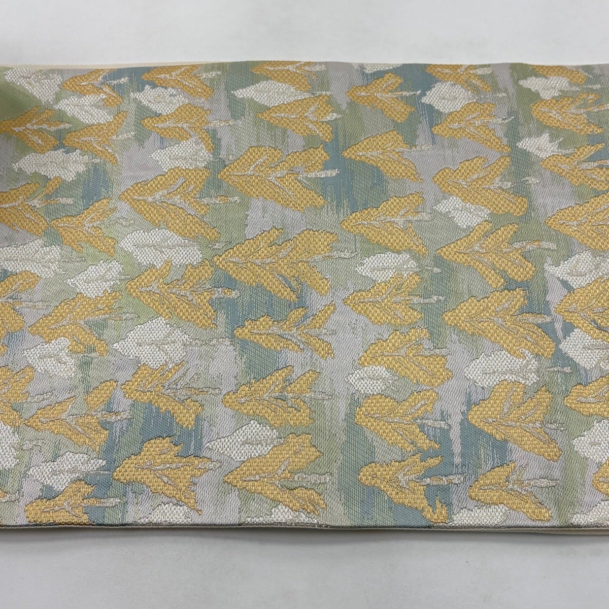 【美品】 袋帯 名品 華文 草花 金糸 箔 薄緑 六通 正絹
