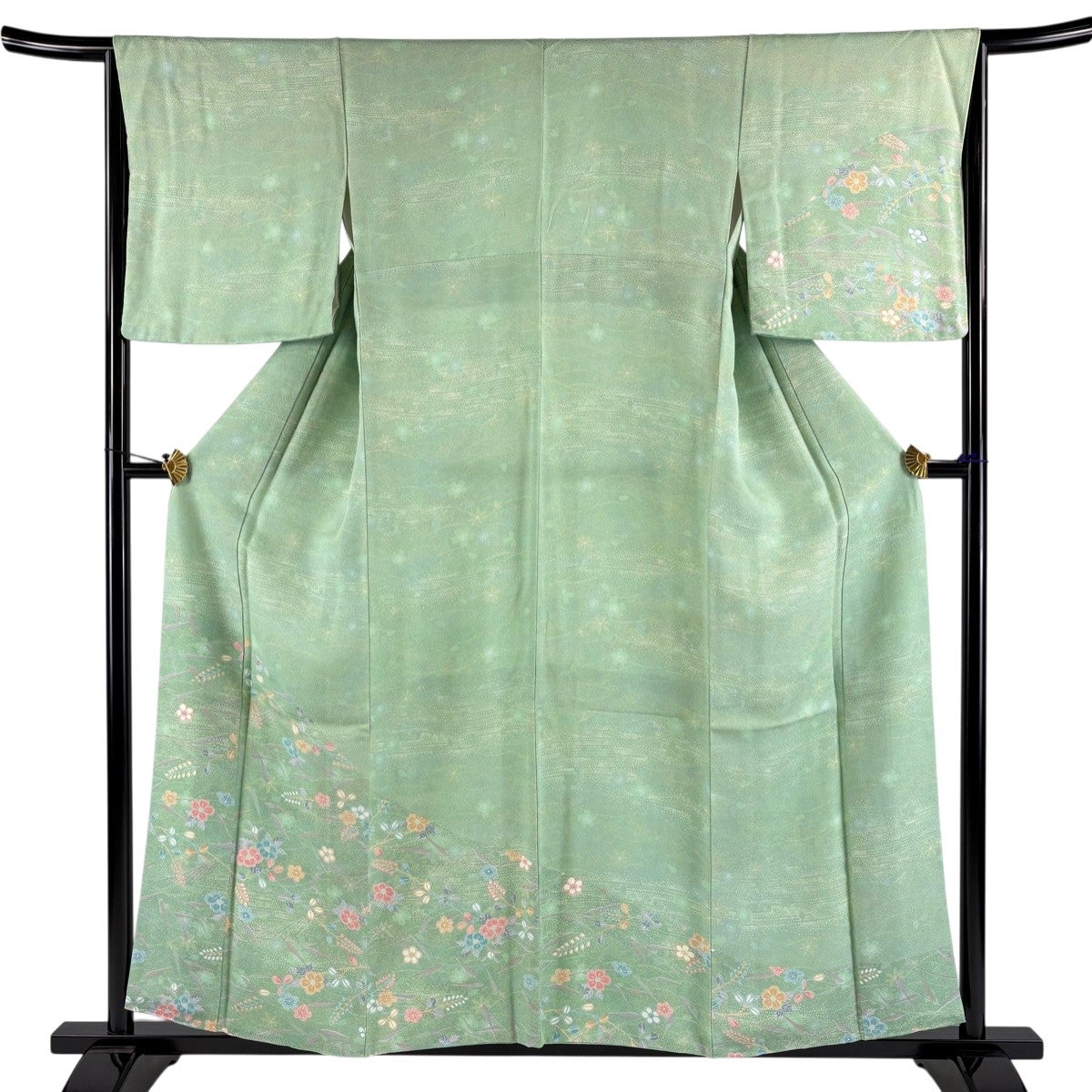 訪問着 身丈167cm 裄丈67cm M 袷 短冊 草花 金銀彩 薄緑 正絹 秀品