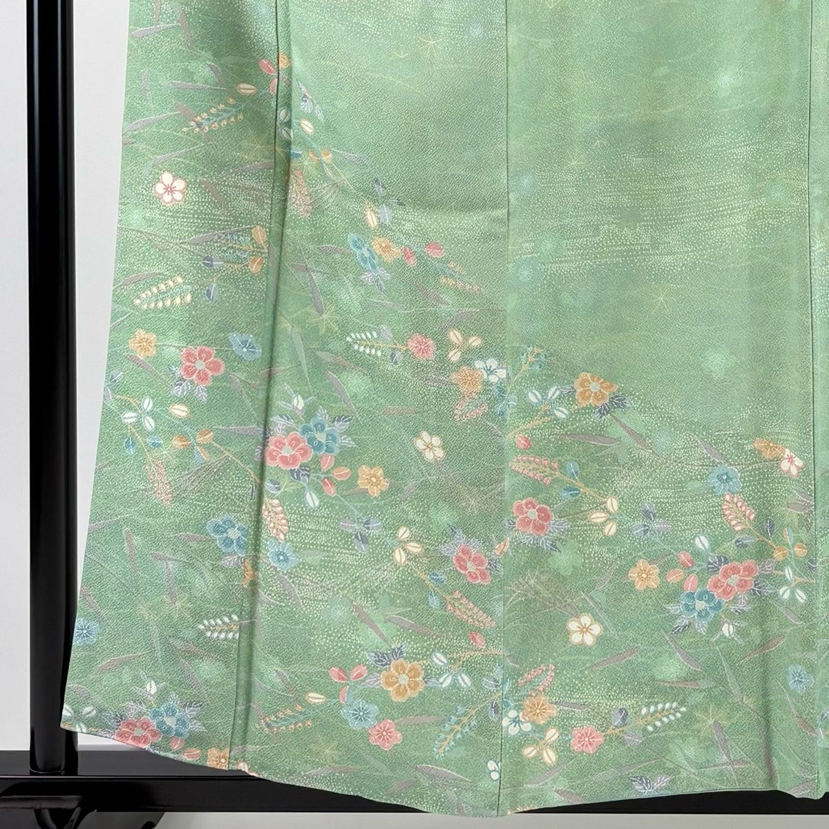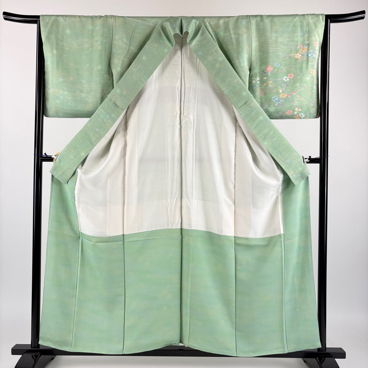 付下げ 身丈161.5cm 裄丈65cm M 袷 枝花 ぼかし 薄緑 正絹 秀品