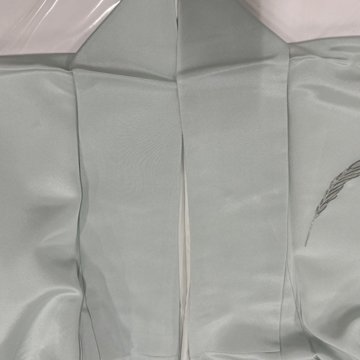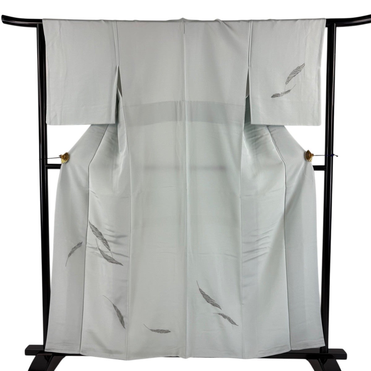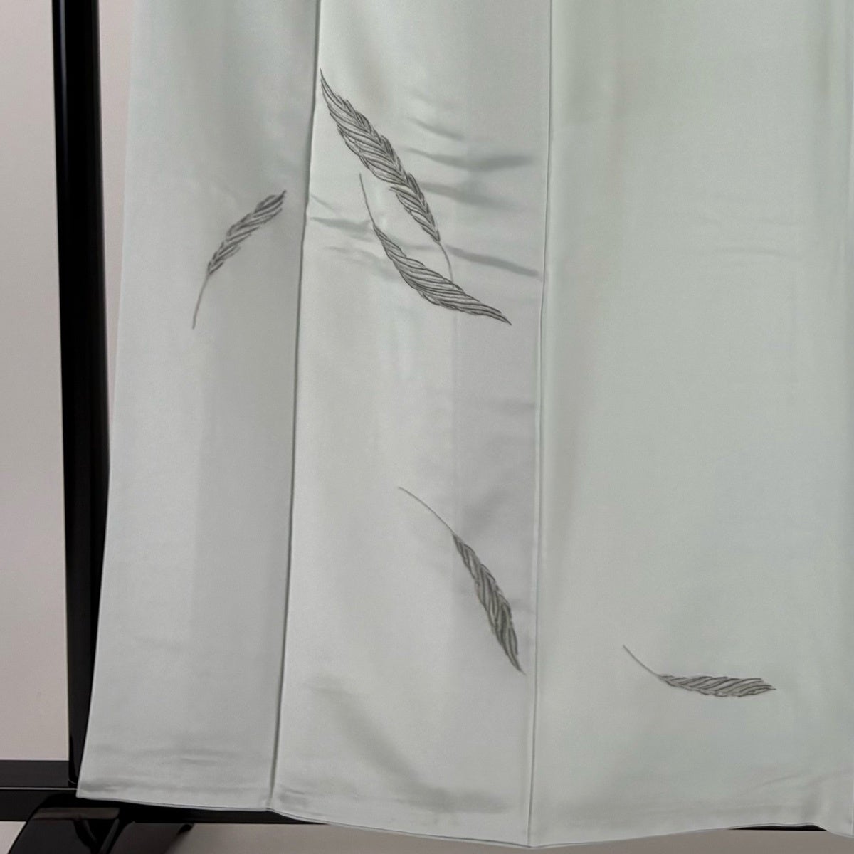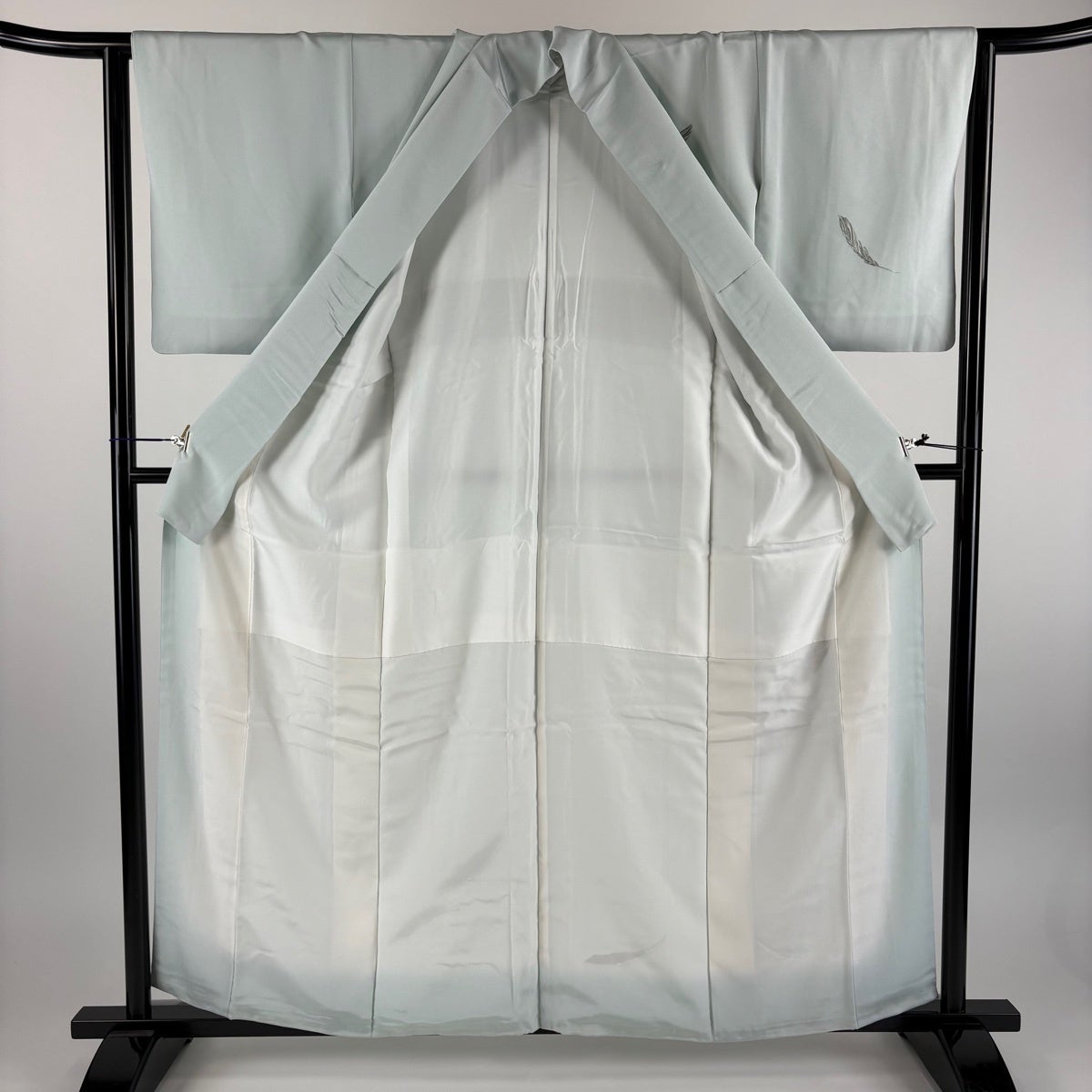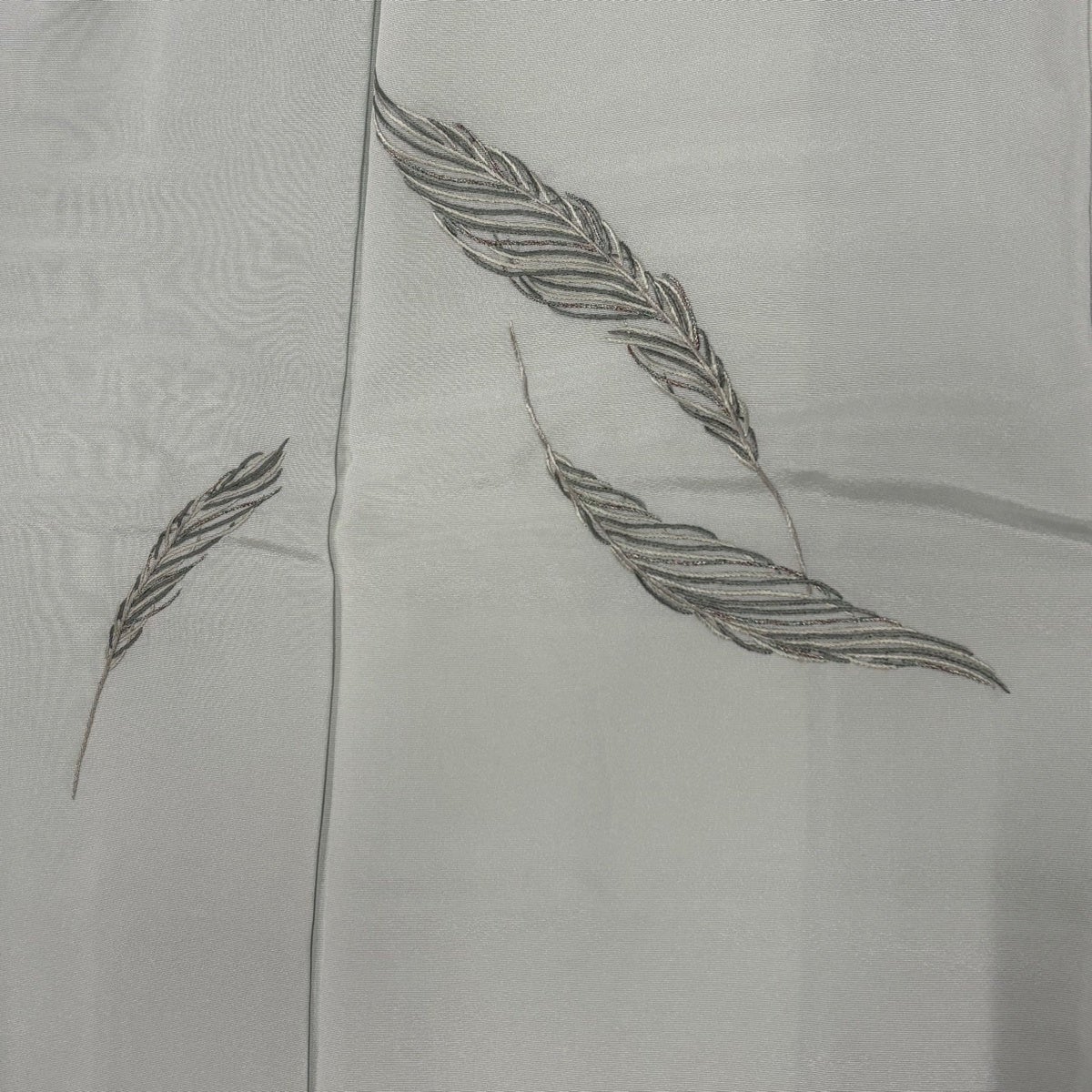 付下げ 身丈159cm 裄丈63cm S 袷 羽 刺繍 金銀彩 薄緑 正絹 秀品