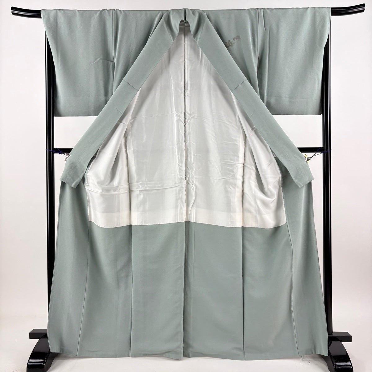 色無地 身丈159cm 裄丈64cm M 袷 落款あり 地紋 薄緑 正絹 秀品 一つ紋