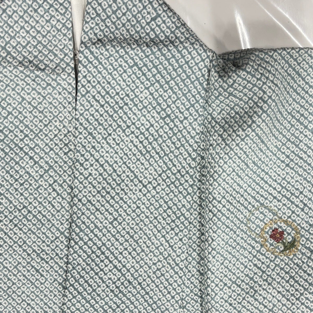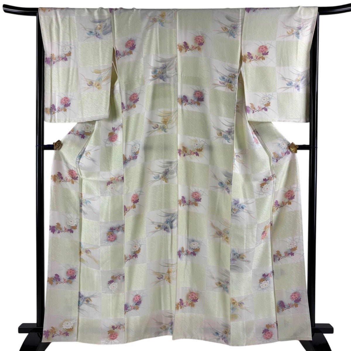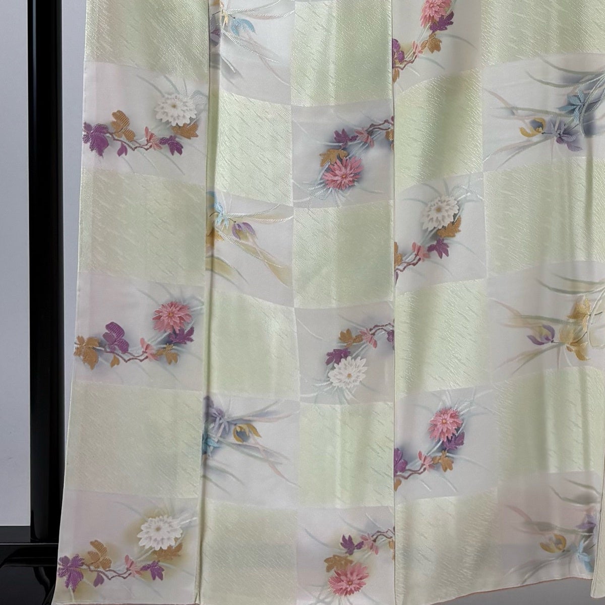 付下げ 身丈159cm 裄丈68cm L 袷 菊 宝尽くし 蘇州刺繍 薄緑 正絹 秀品