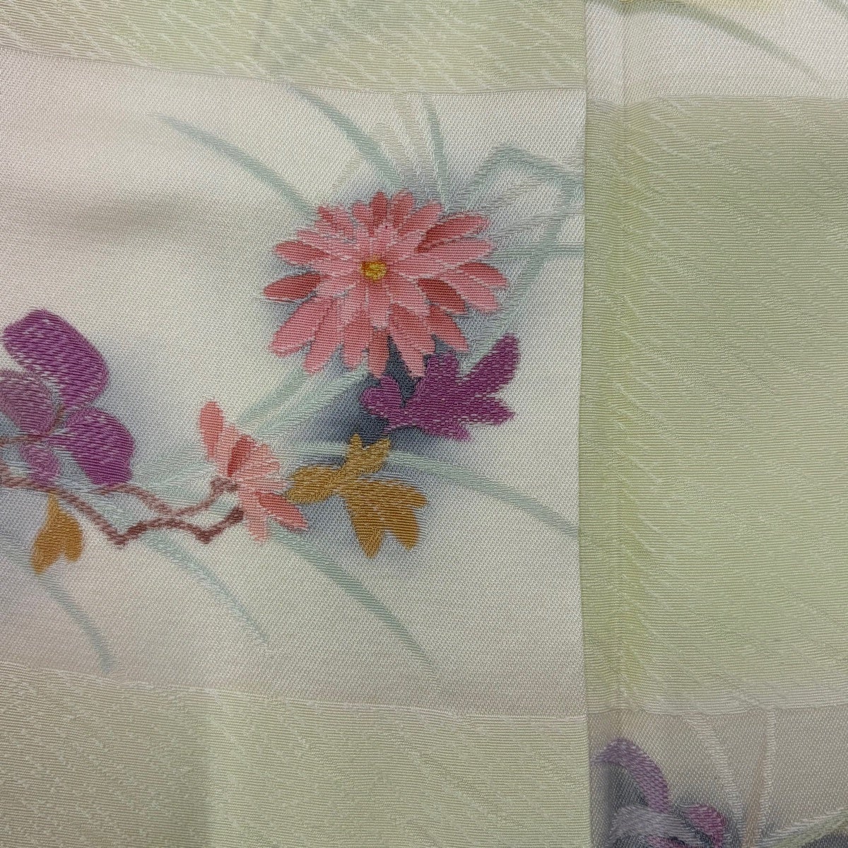 訪問着 身丈164.5cm 裄丈65cm M 袷 秋草 金彩 染め分け 薄緑 正絹 秀品