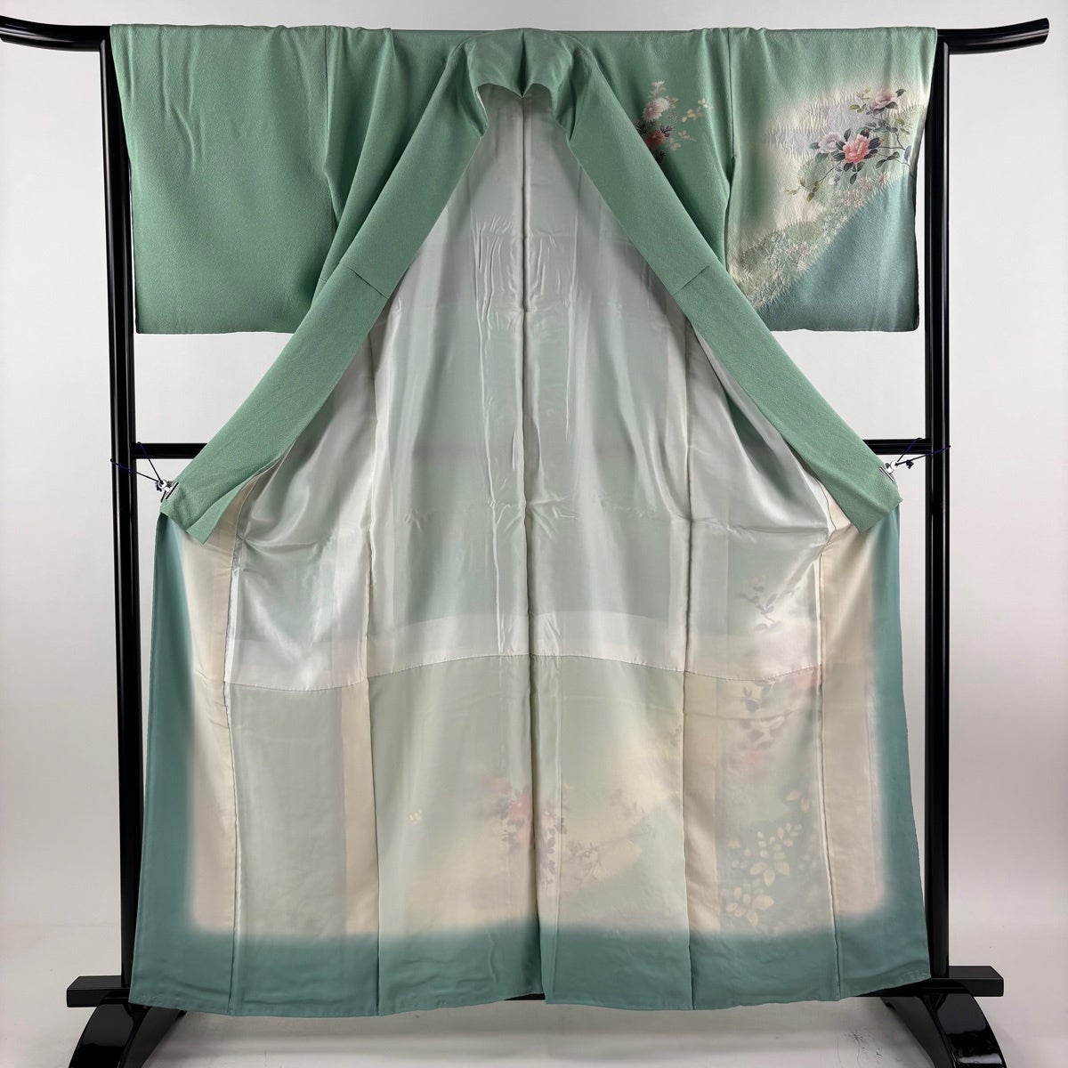 付下げ 身丈159.5cm 裄丈63cm S 紗絽袷 草花 ぼかし 薄緑 正絹 名品