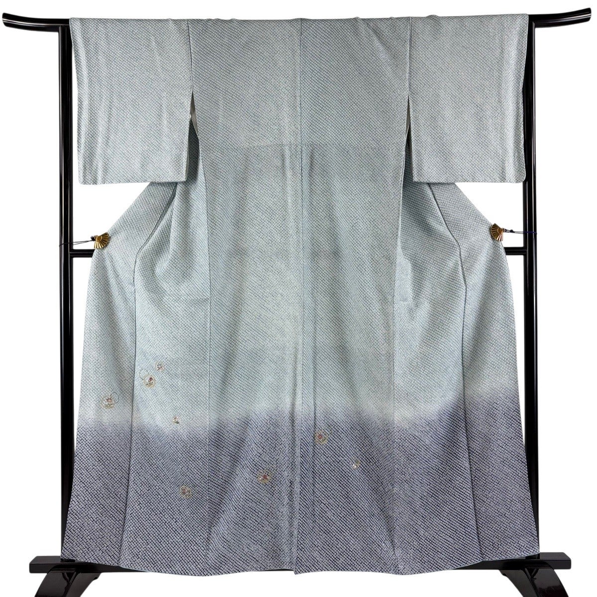 訪問着 身丈155.5cm 裄丈65.5cm M 袷 幾何学 地紋 ぼかし 薄緑 正絹 秀品