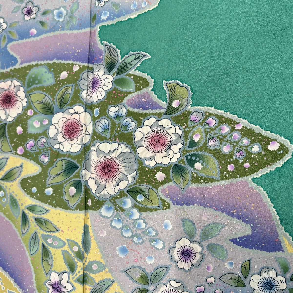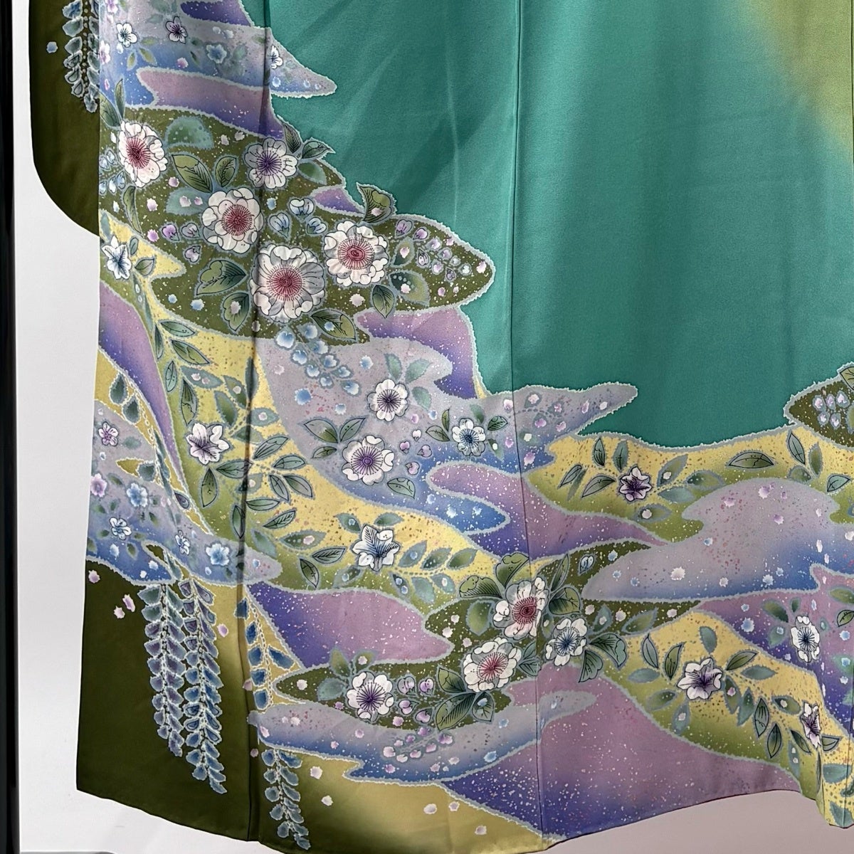 訪問着 身丈156.5cm 裄丈65cm M 袷 落款あり 草花 染め分け ぼかし 薄緑 正絹 名品