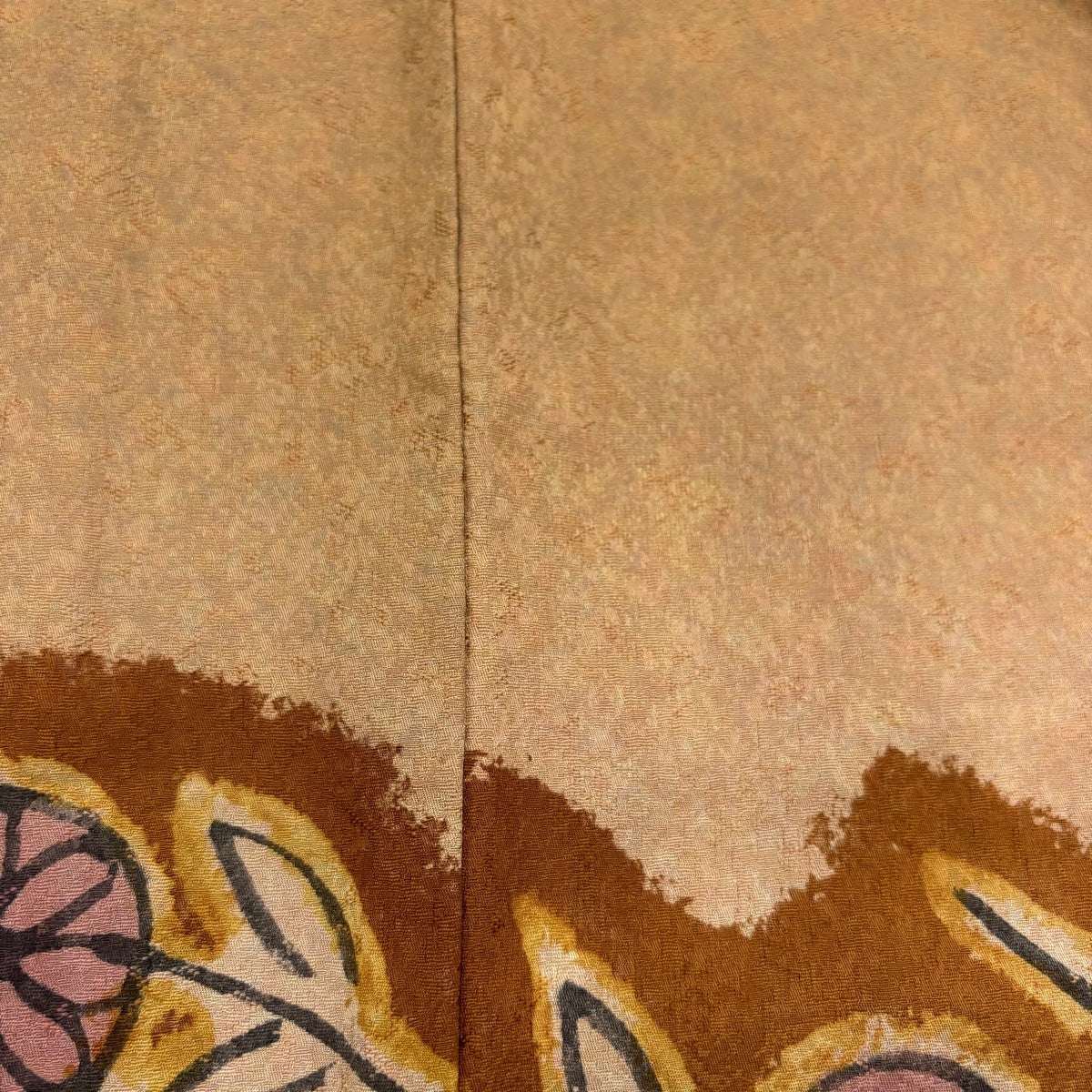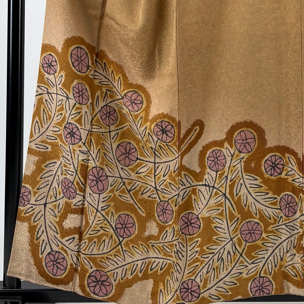 訪問着 身丈161cm 裄丈66cm M 袷 雪輪 草花 金彩 染め分け 薄茶色 正絹 名品