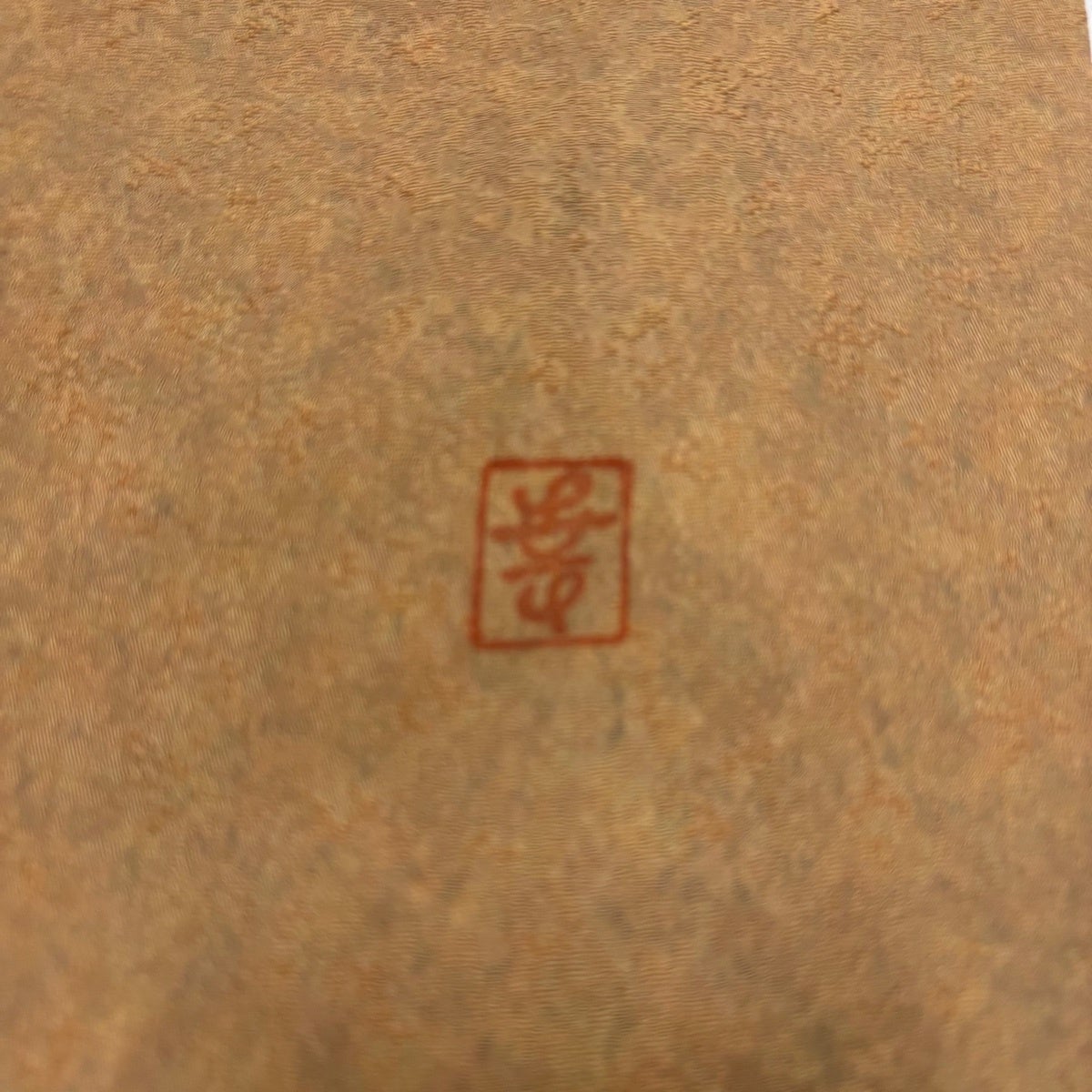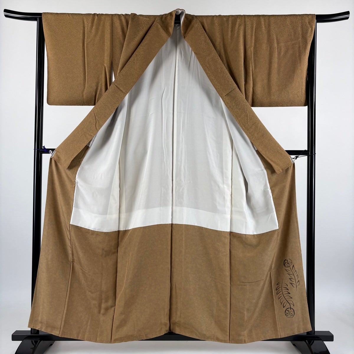 色無地 身丈154cm 裄丈62cm S 袷 百貫 落款あり 地紋 薄茶色 正絹 秀品 一つ紋
