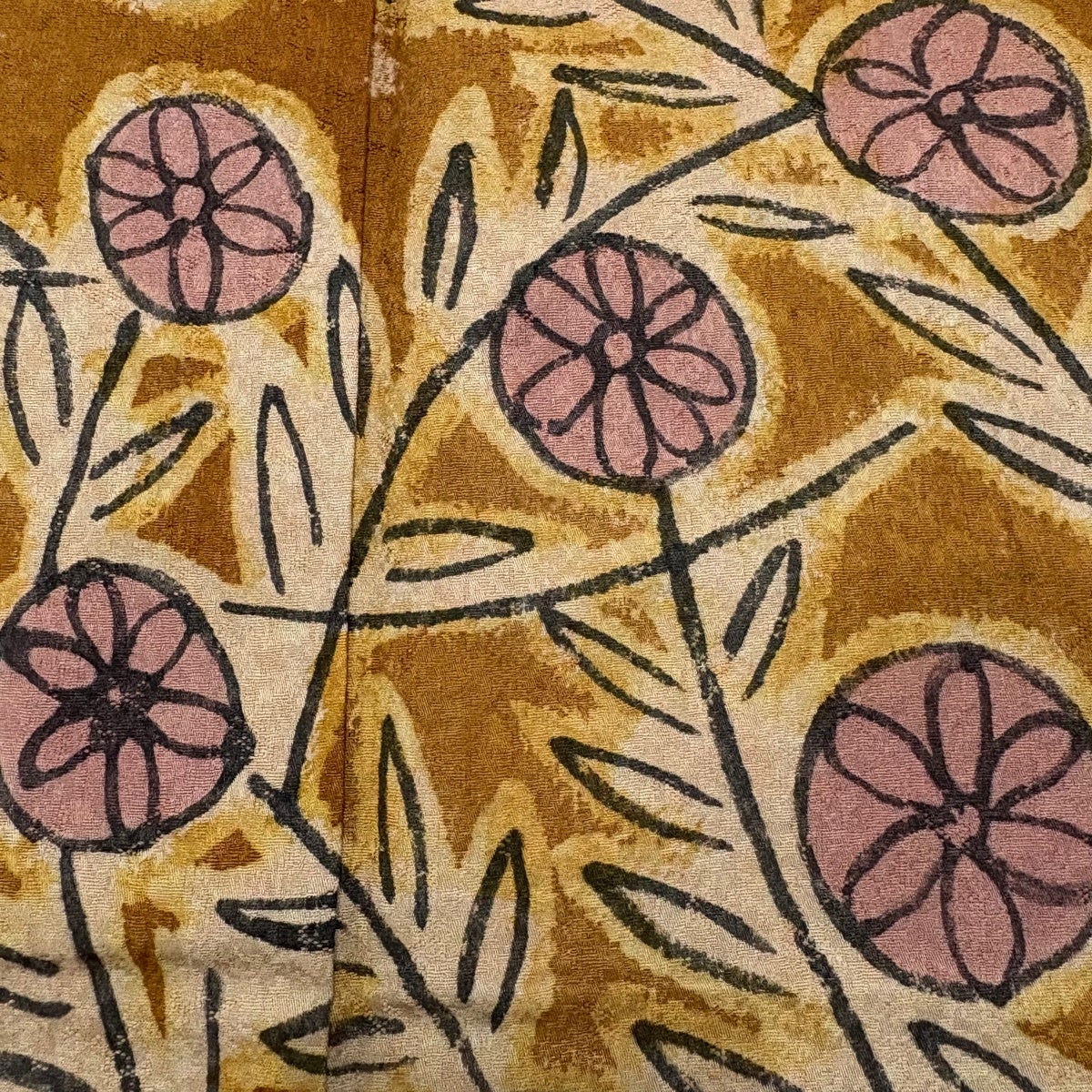 【美品】 小紋 身丈158cm 裄丈63.5cm S 袷 蔓帯 草花 縮緬 薄茶色 正絹 優品