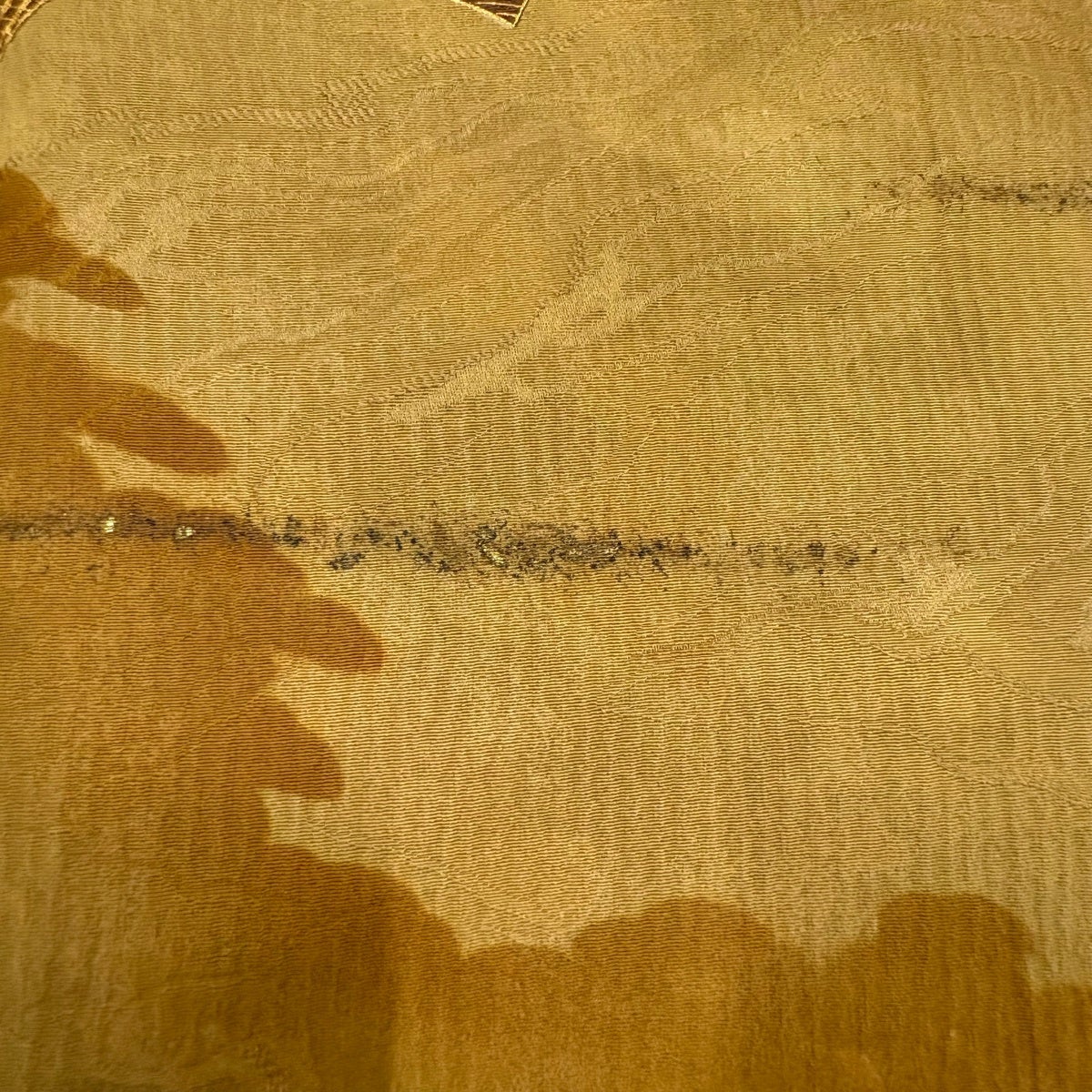 【美品】 袋帯 秀品 夏帯 関西仕立て 絽 葉柄 波頭 金銀糸 刺繍 薄茶色 お太鼓柄 正絹