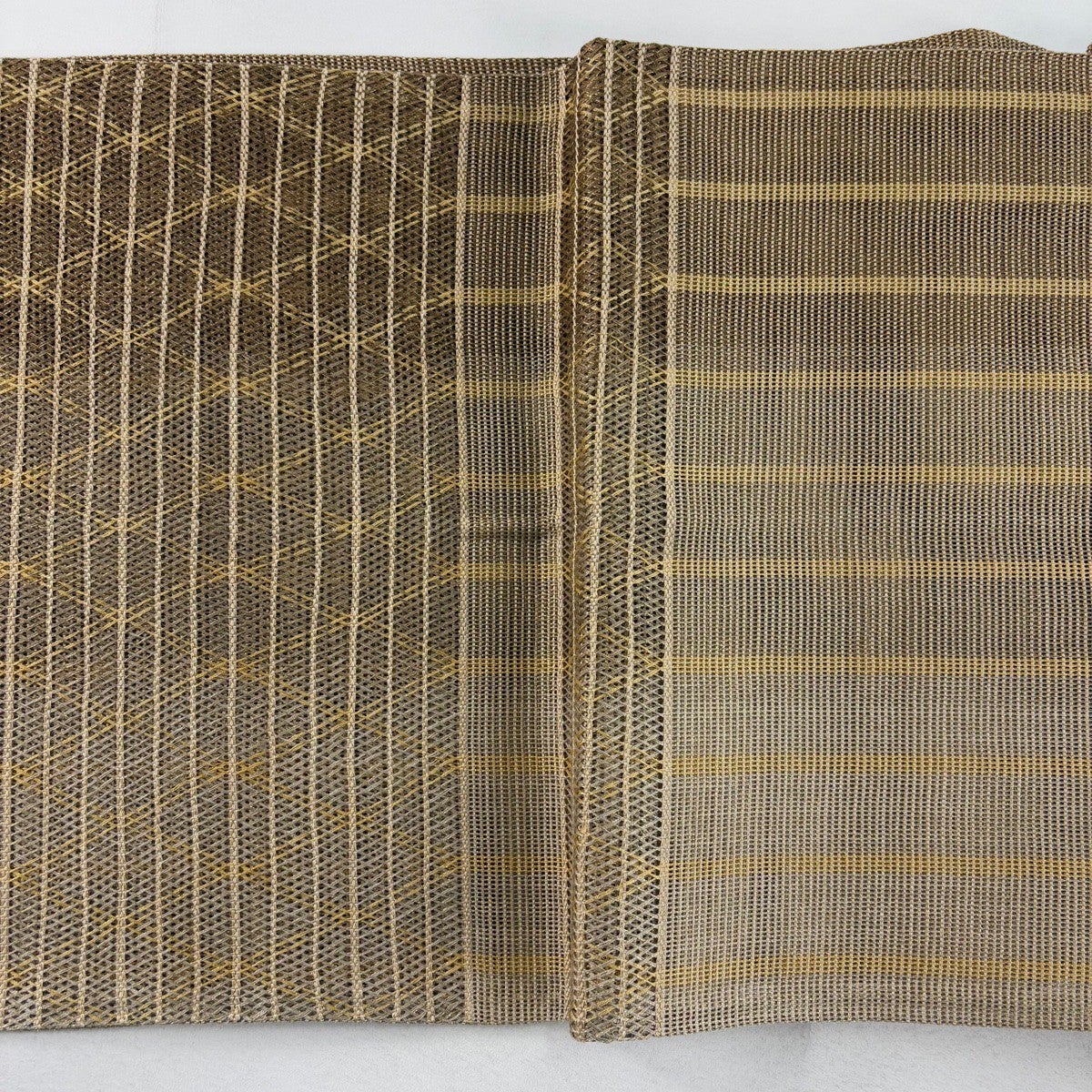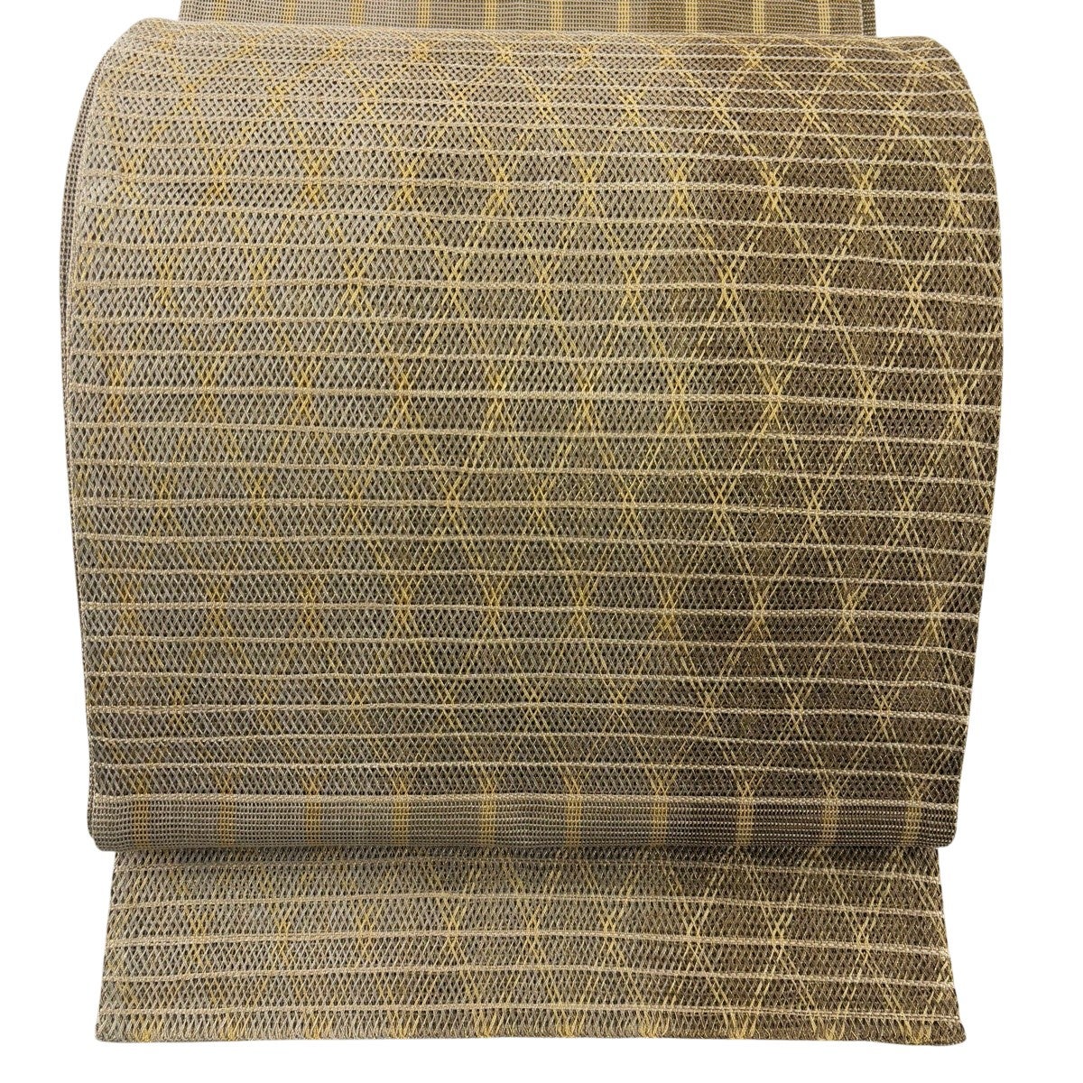 【美品】 袋帯 秀品 夏帯 縞 斜め格子 金糸 薄茶色 お太鼓柄 正絹