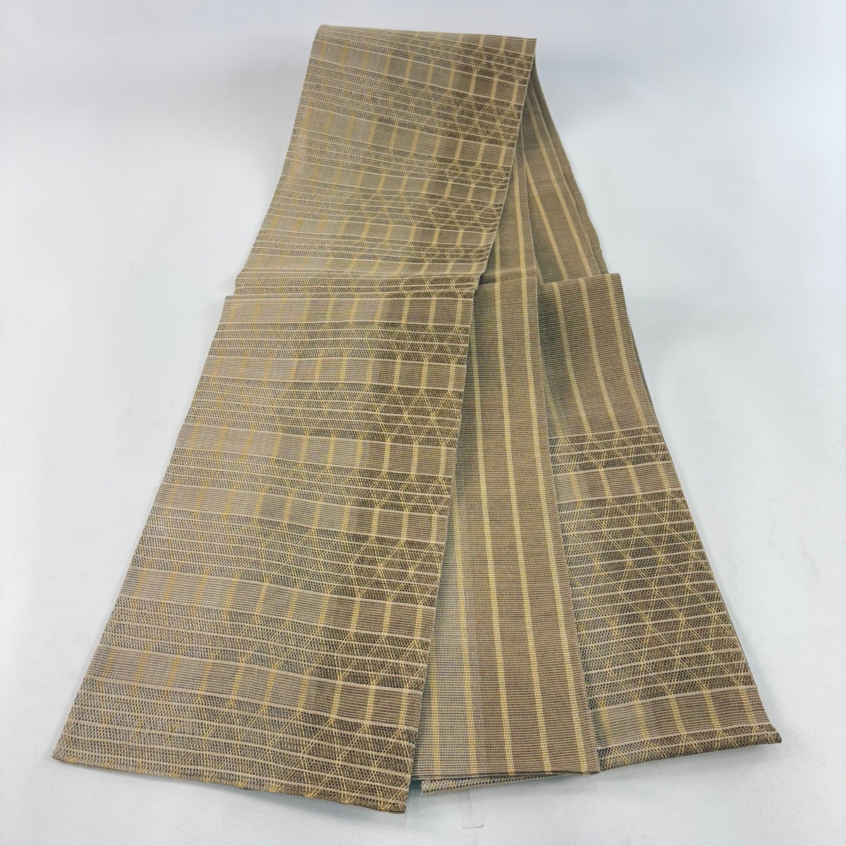【美品】付け帯 逸品 作り帯 共箱付 段縞 幾何学模様 薄茶色 芭蕉