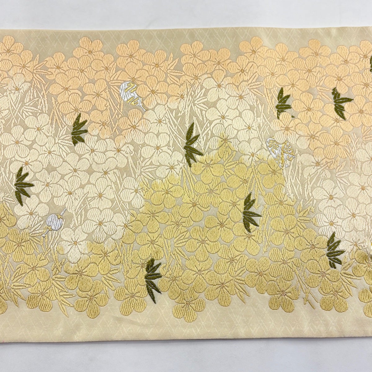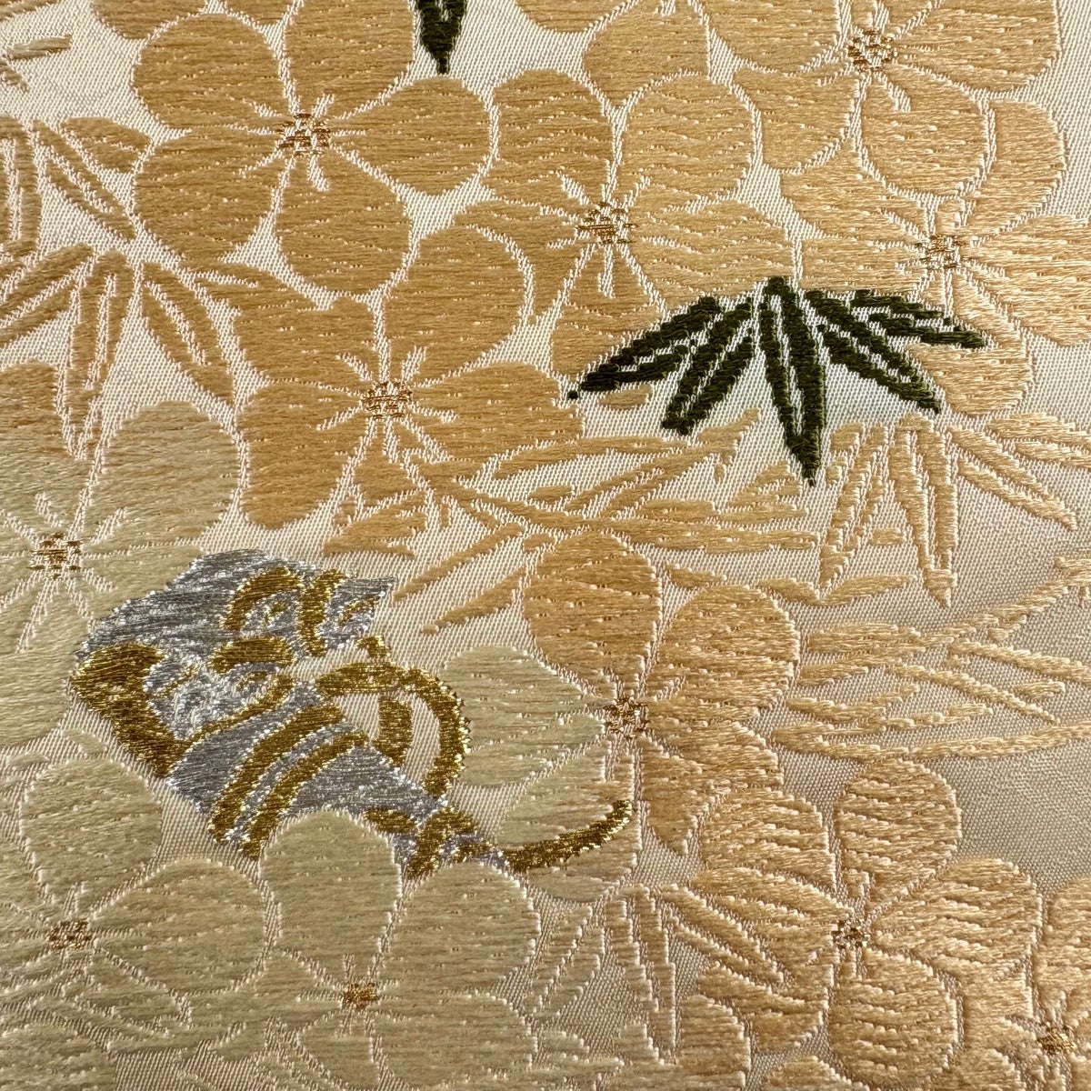 【美品】 袋帯 秀品 梅 桜 金糸 唐織 薄黄 六通 正絹