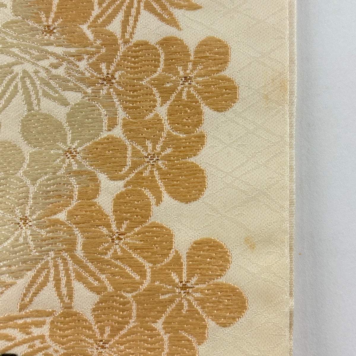半幅帯 優品 桜 花びら 箔 薄黄土色 化繊