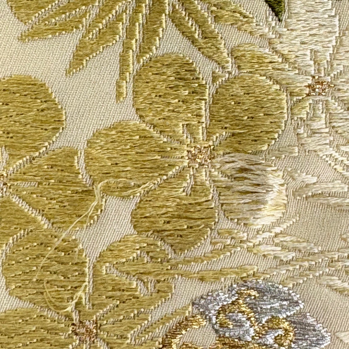 【在庫一掃】 【美品】 袋帯 名品 草花 幾何学模様 薄黄 六通 正絹