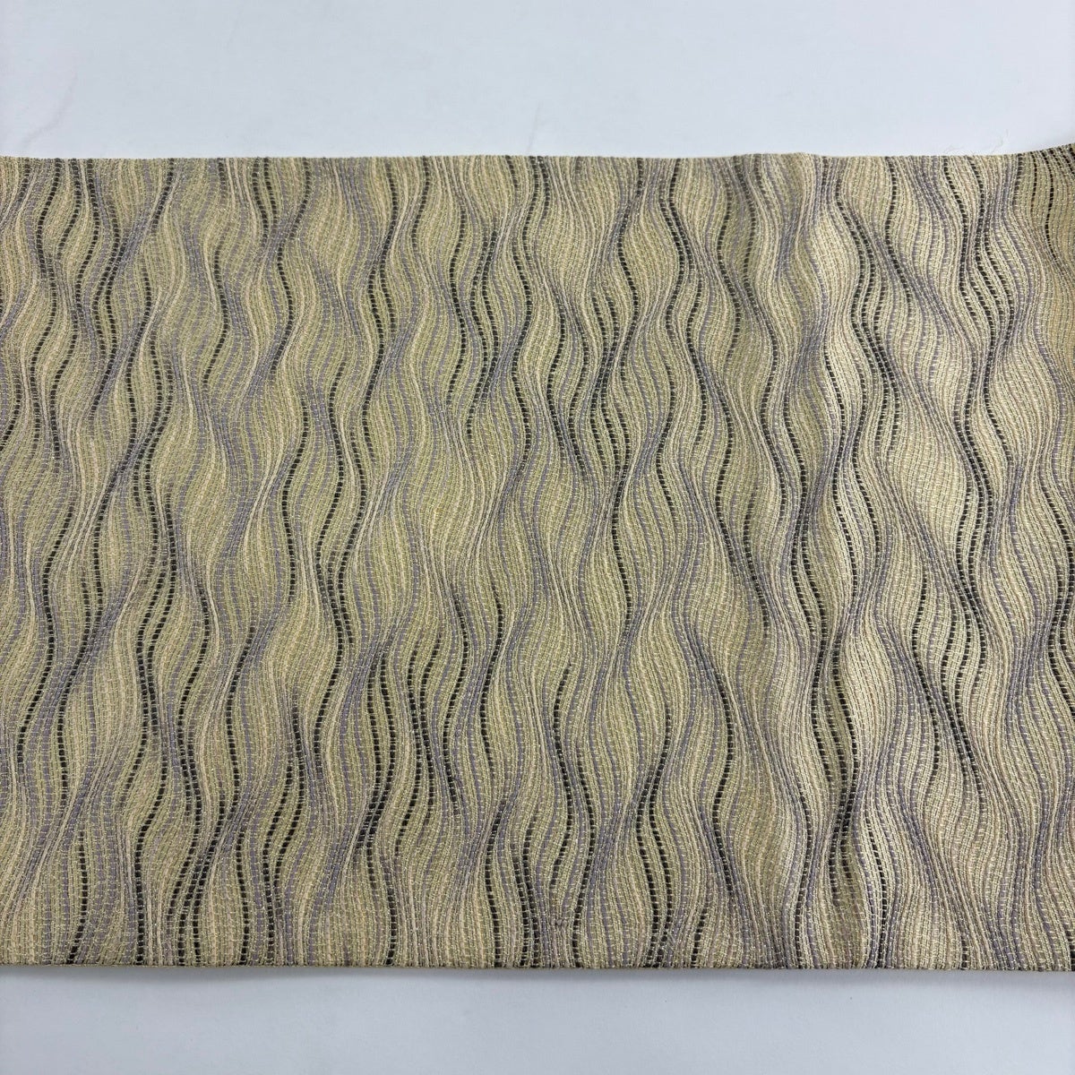 【美品】 袋帯 秀品 縞 薄黄土色 全通 正絹