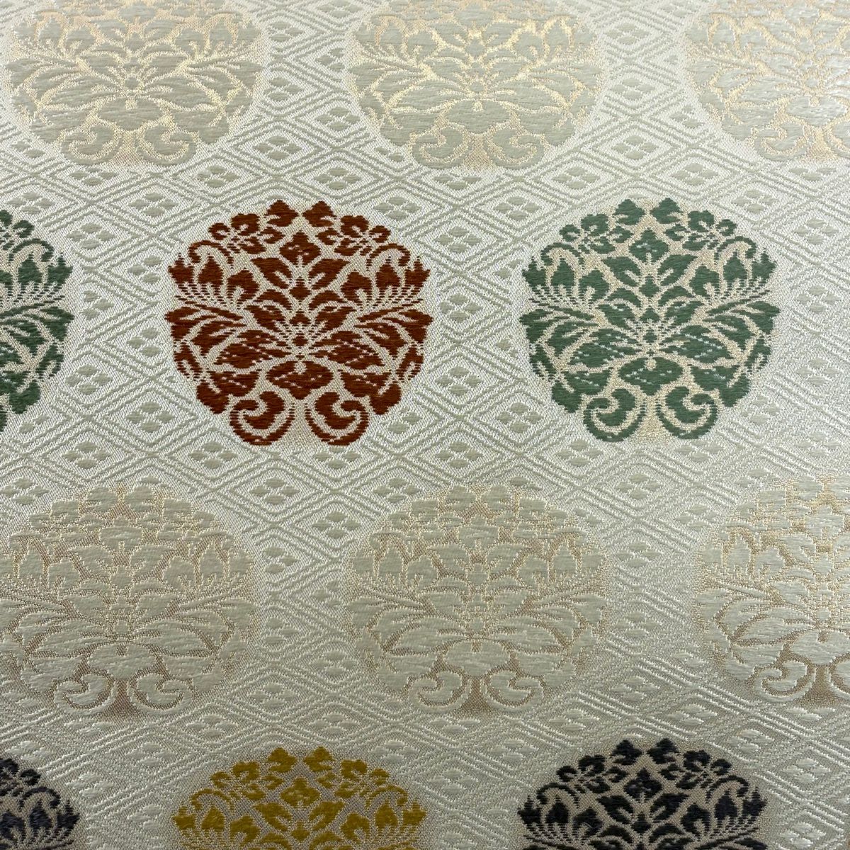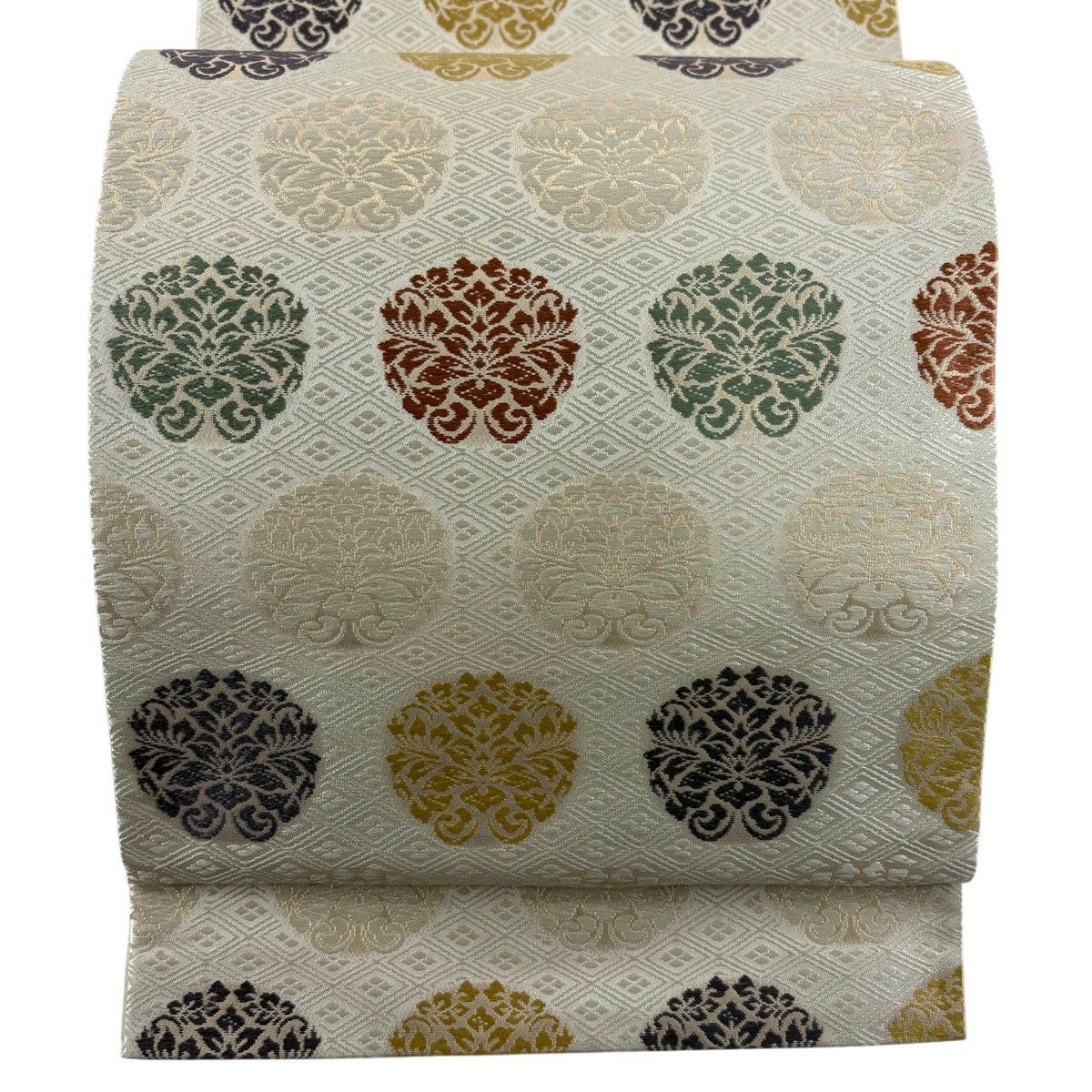 【在庫一掃】 【美品】 名古屋帯 逸品 入子菱 花菱 唐織 金糸 薄黄 正絹