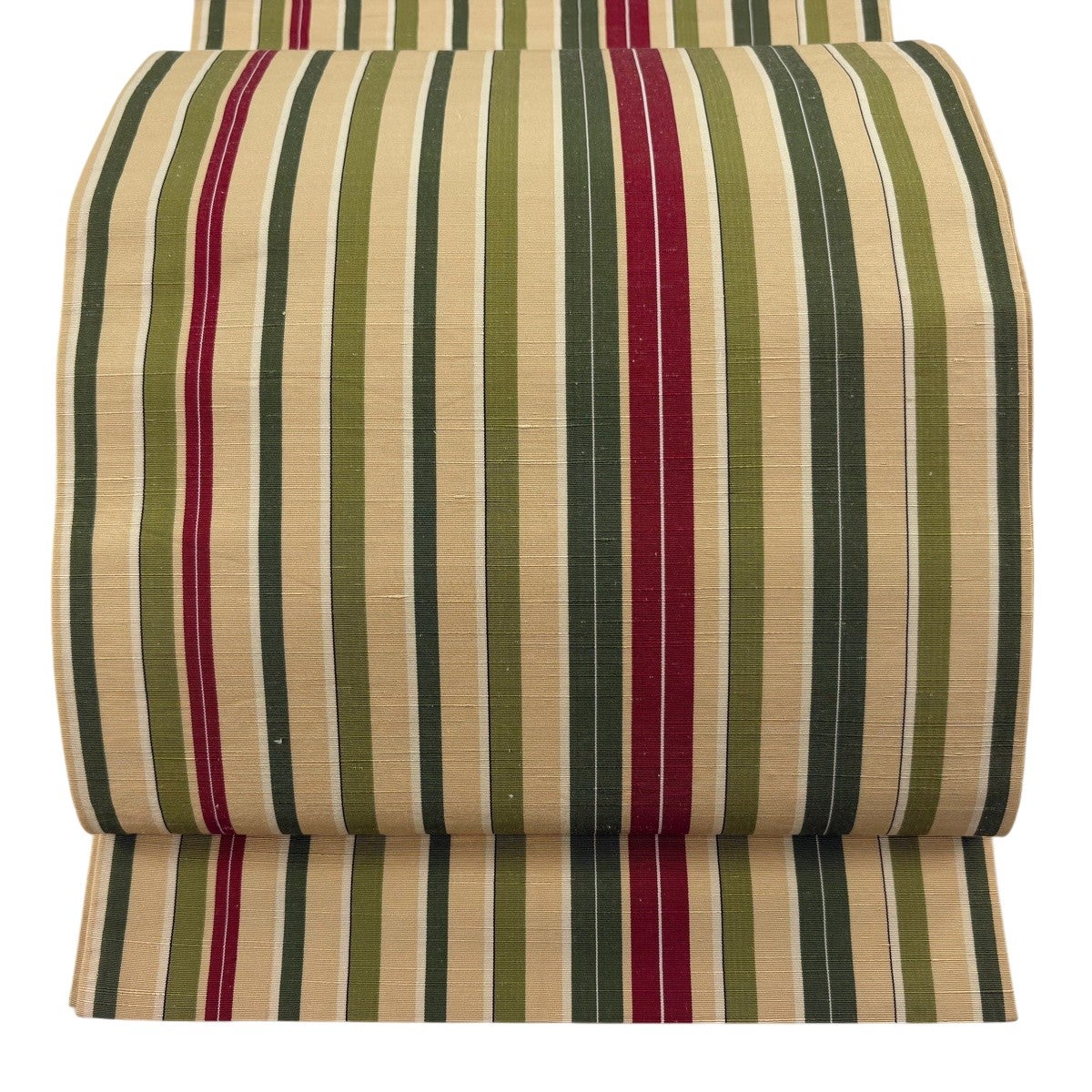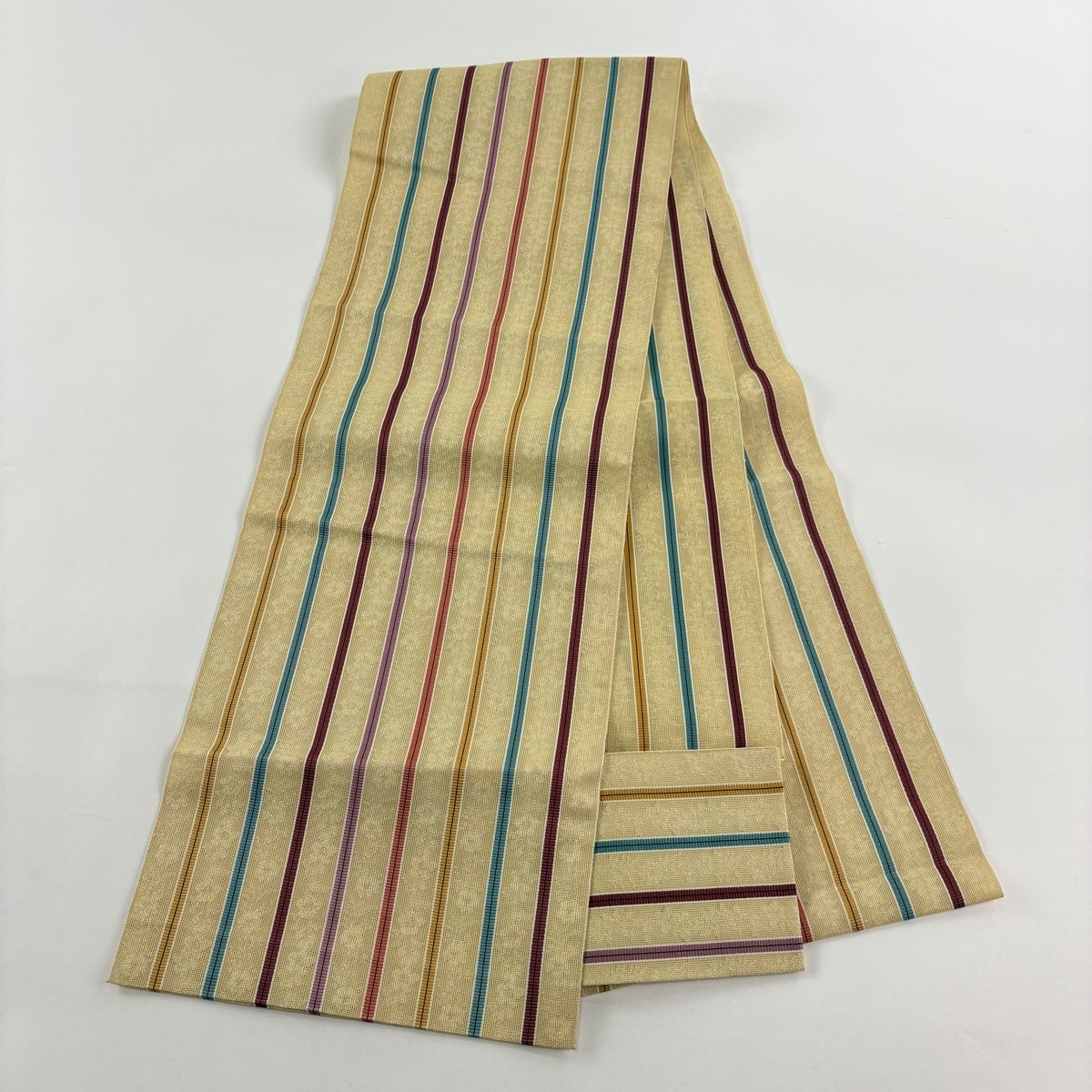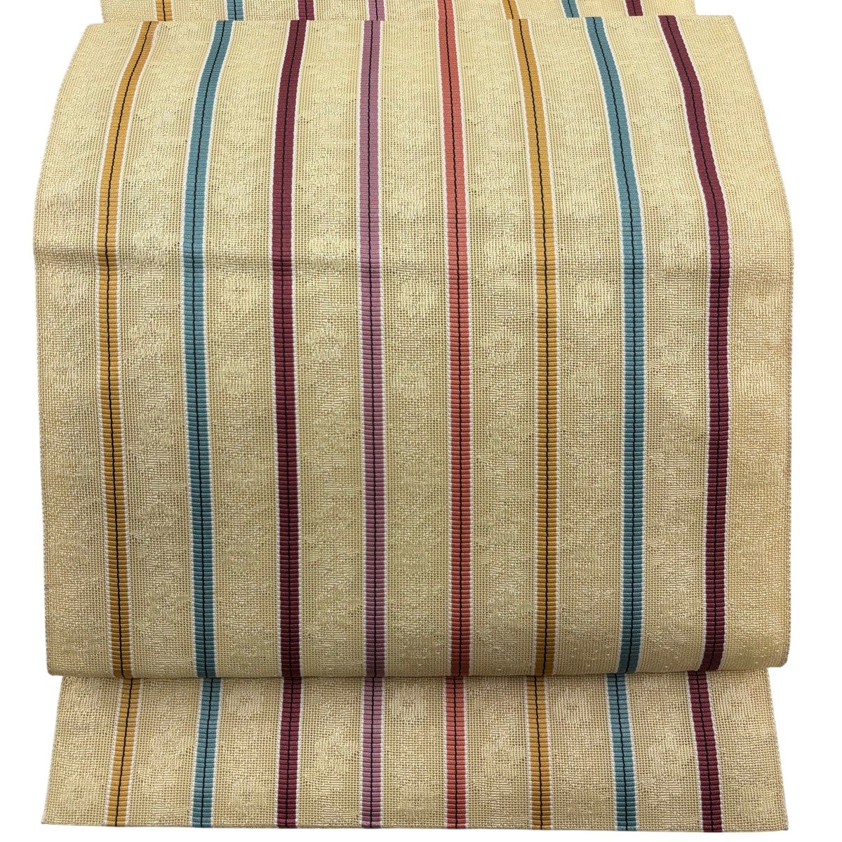 袋帯 秀品 縞 幾何学模様 薄黄土色 全通 正絹