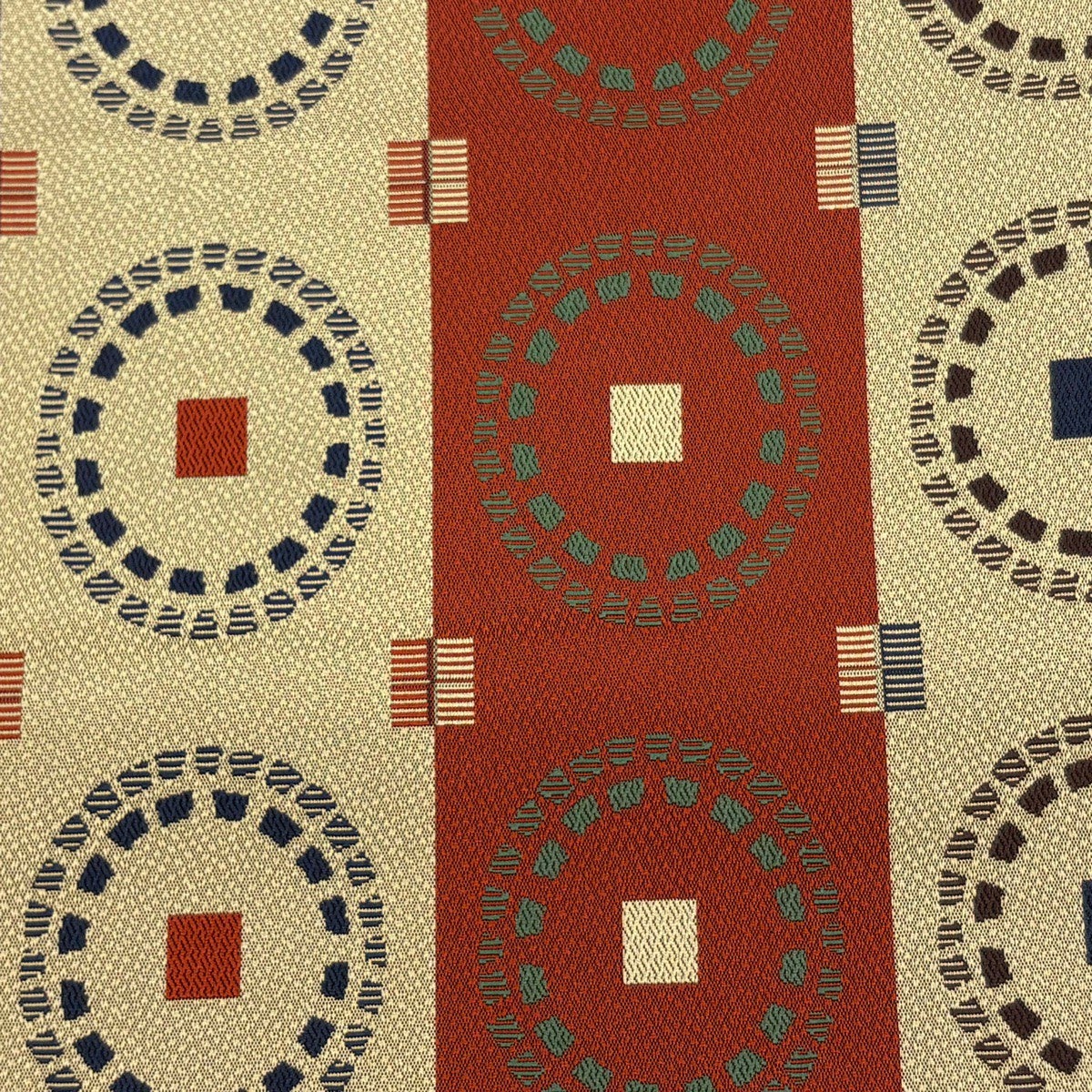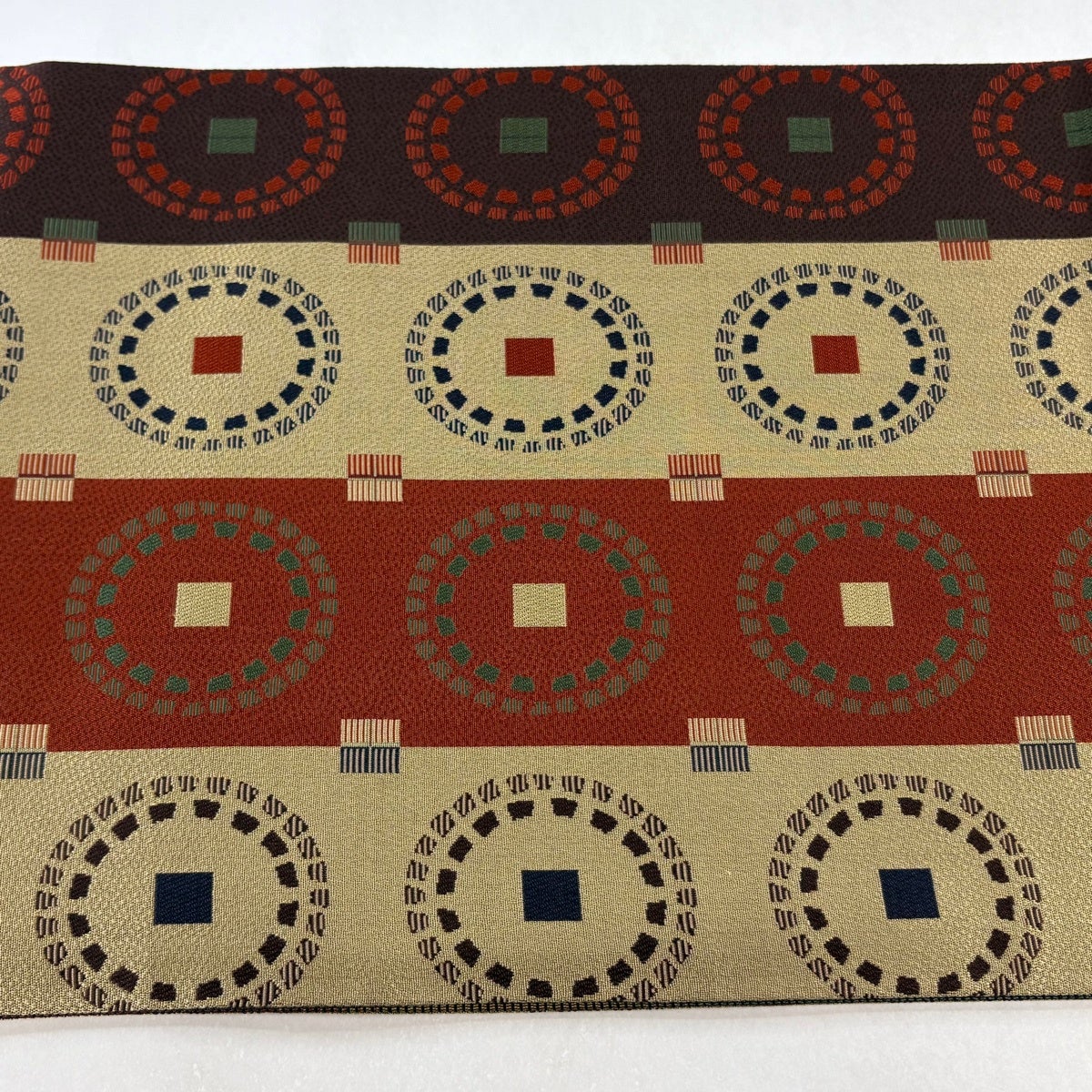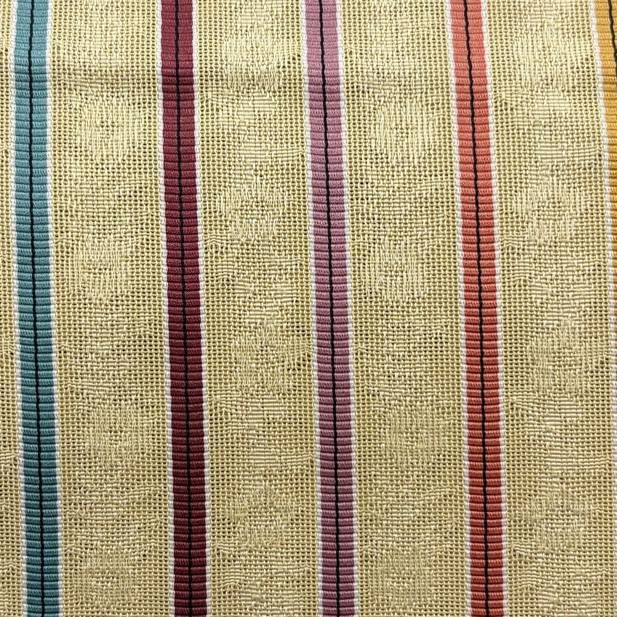 袋帯 秀品 縞 幾何学模様 薄黄土色 全通 正絹