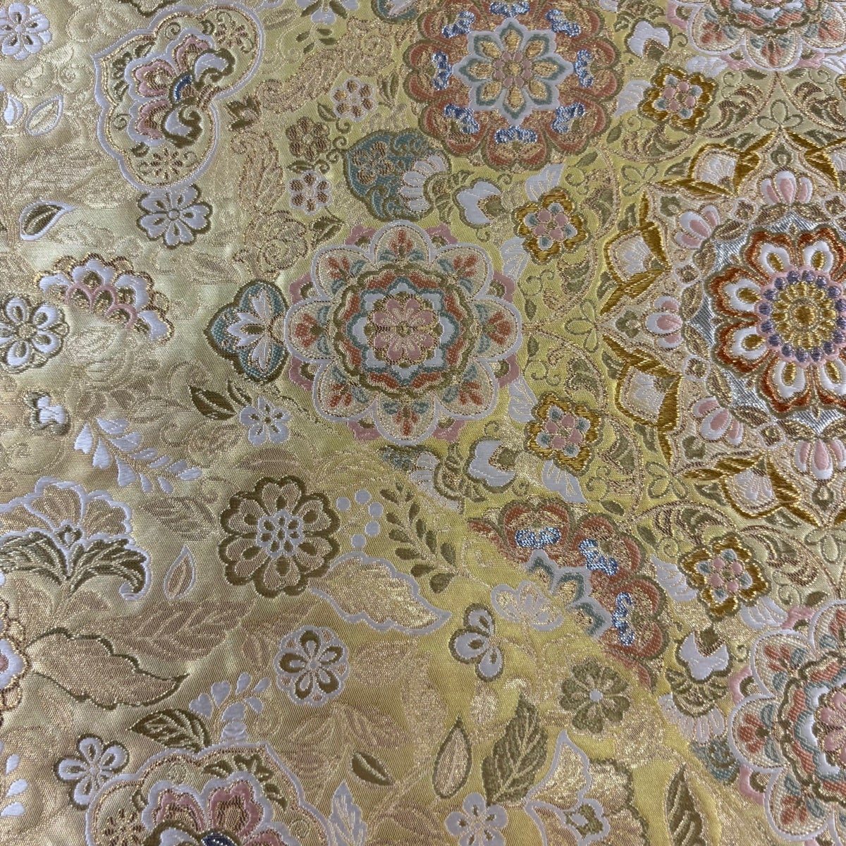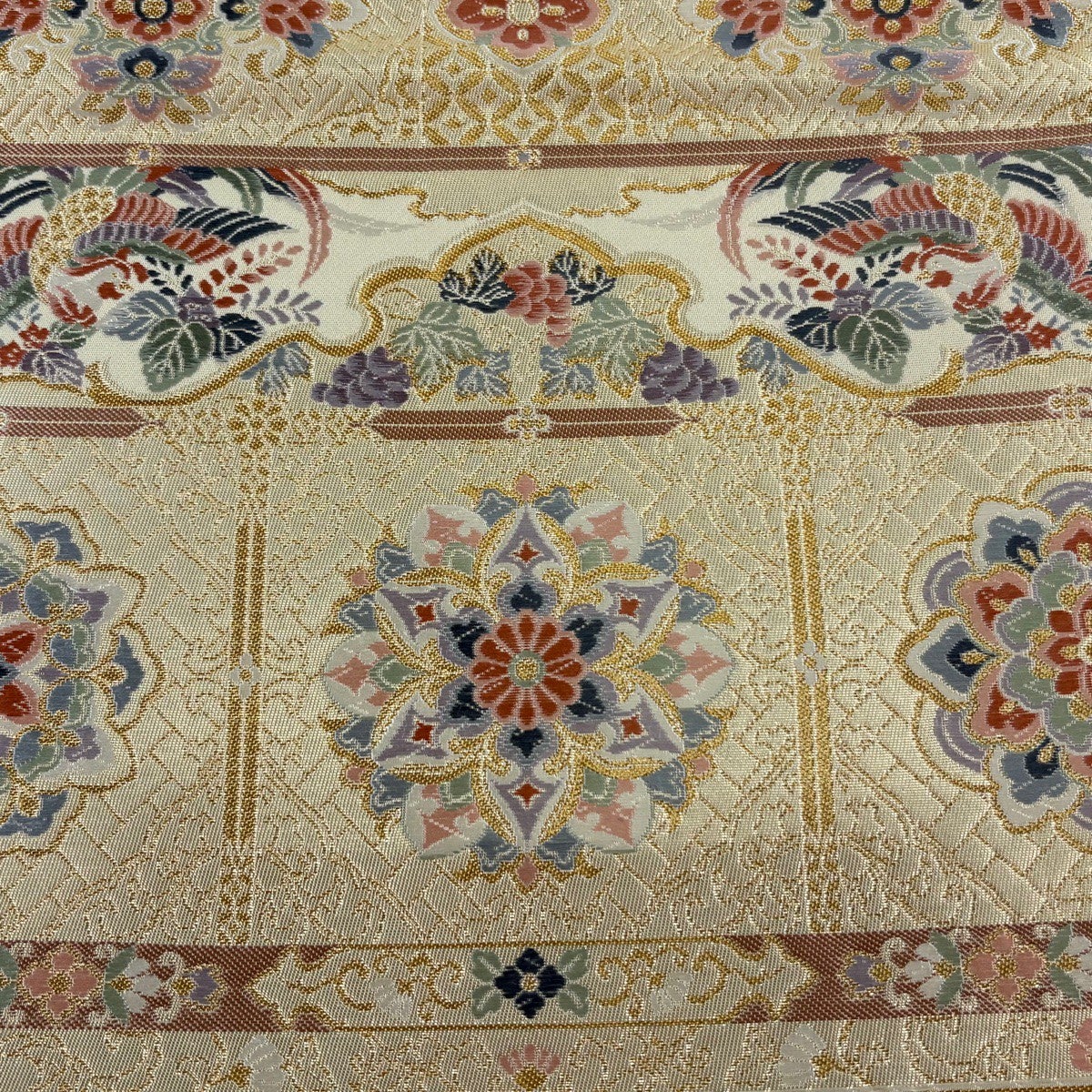 30%OFF 開き名古屋帯 秀品 花菱 桐唐草 金糸 箔 薄黄 正絹 K30
