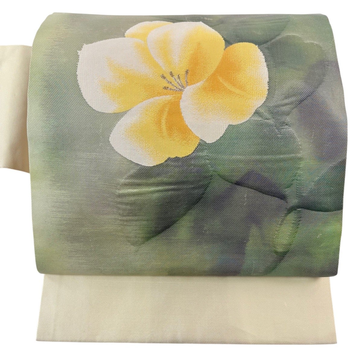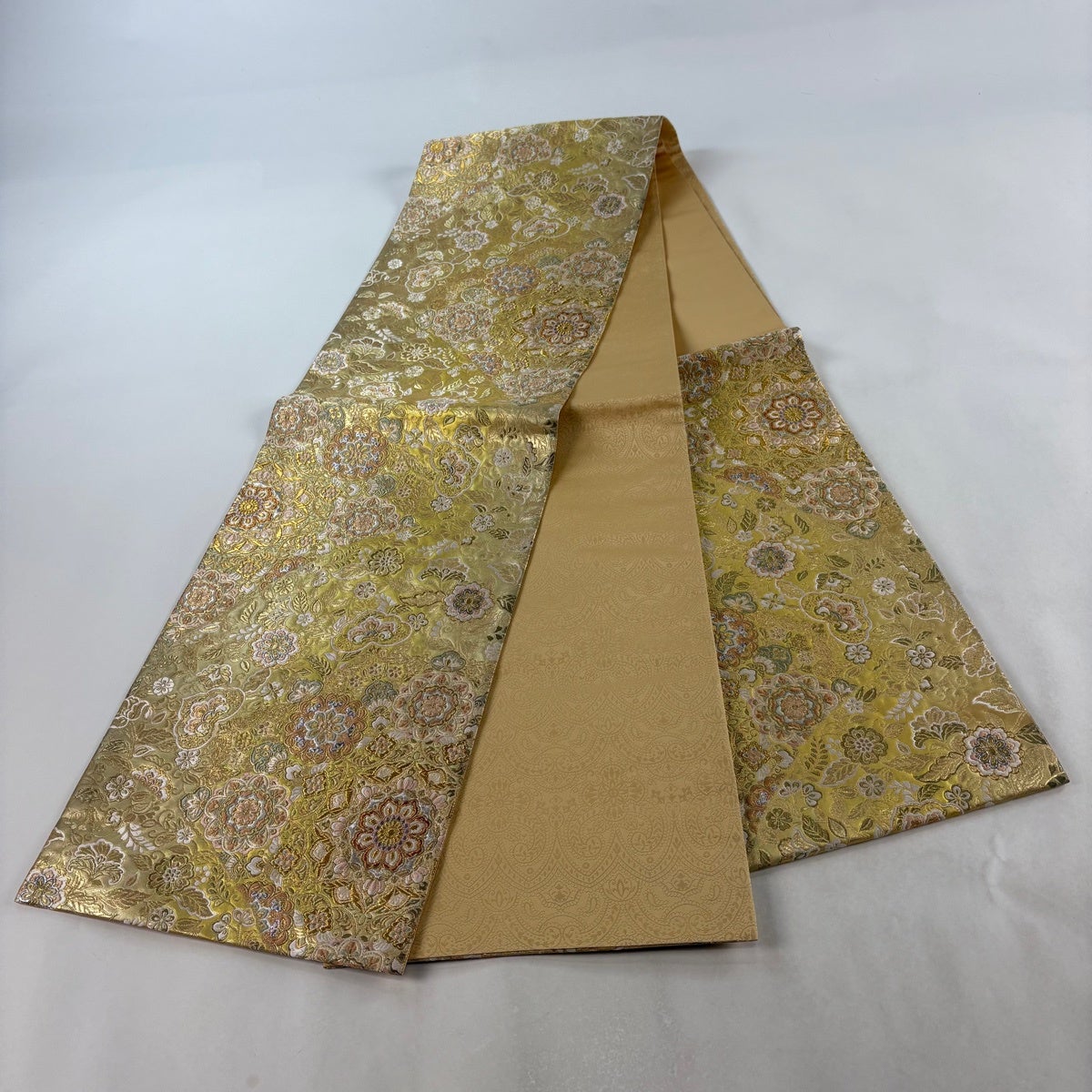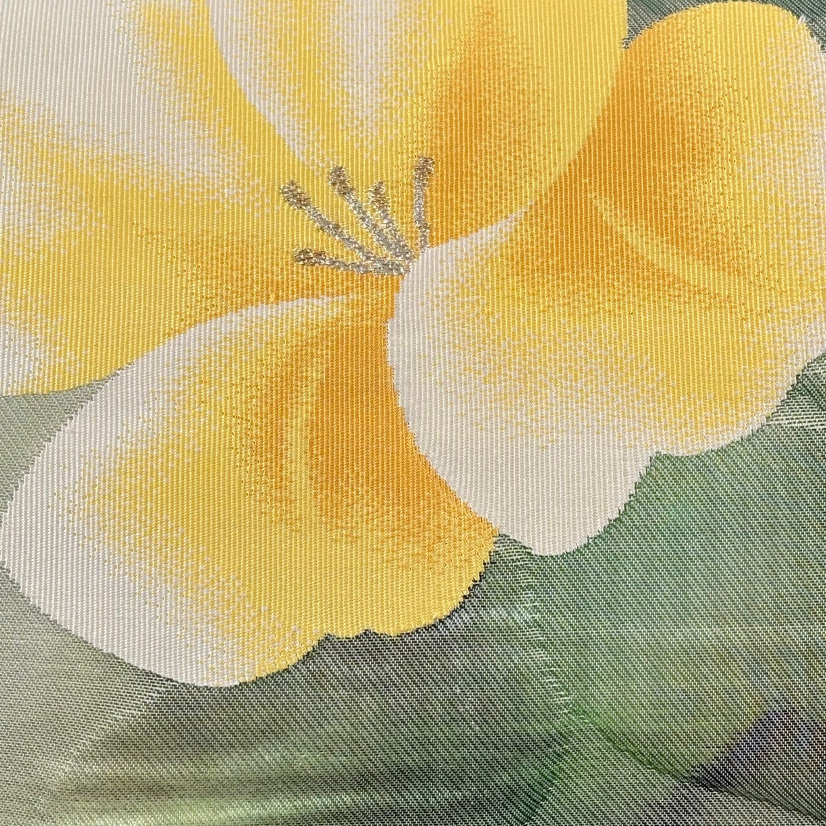 50%OFF 【美品】 袋帯 秀品 振袖向き 草花 箔 薄黄 六通 正絹 K50