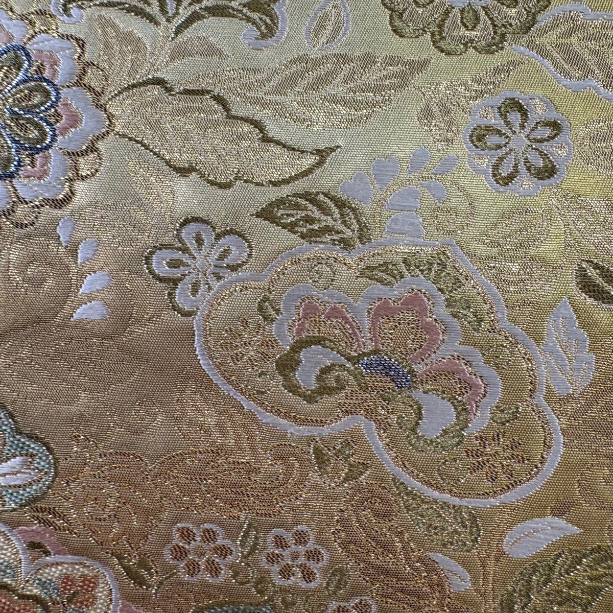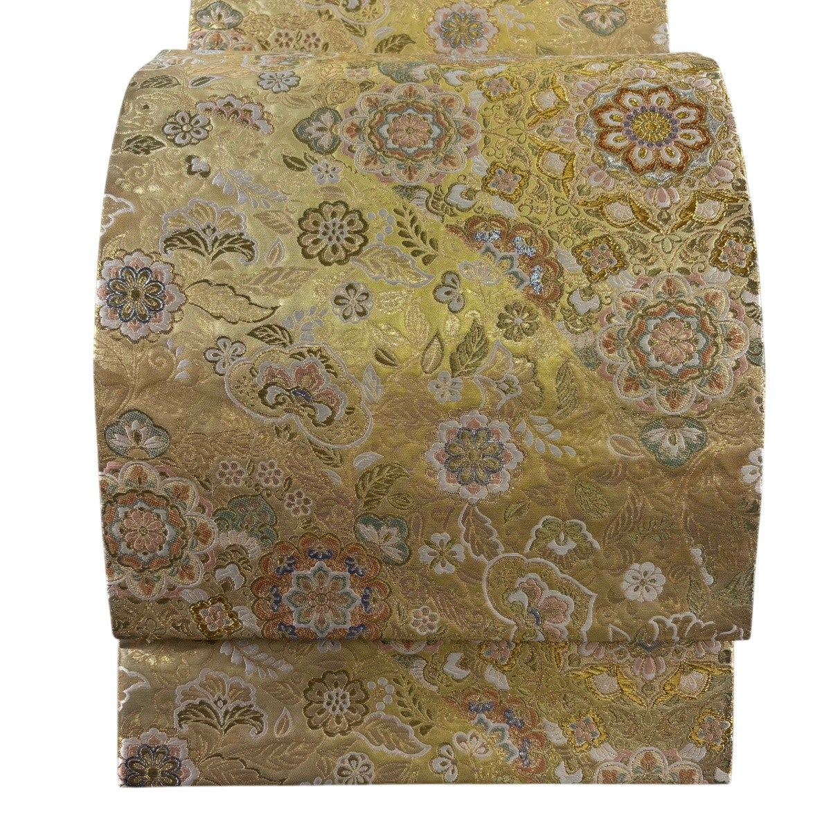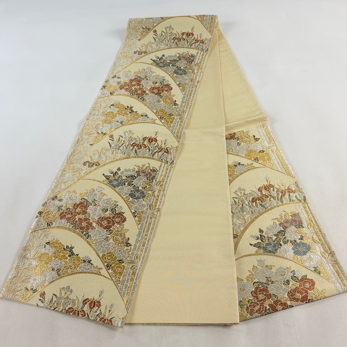 50%OFF 【美品】 袋帯 秀品 振袖向き 草花 箔 薄黄 六通 正絹 K50