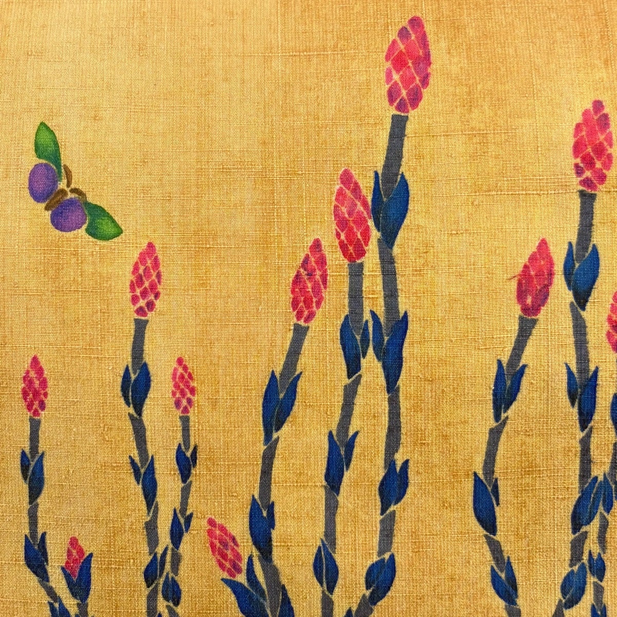 名古屋帯 名品 紬地 つくし 蝶 金彩 薄黄土色 正絹