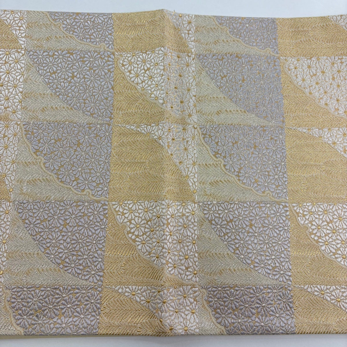 30%OFF 【美品】 名古屋帯 秀品 幾何学 金銀糸 薄黄 正絹 K30