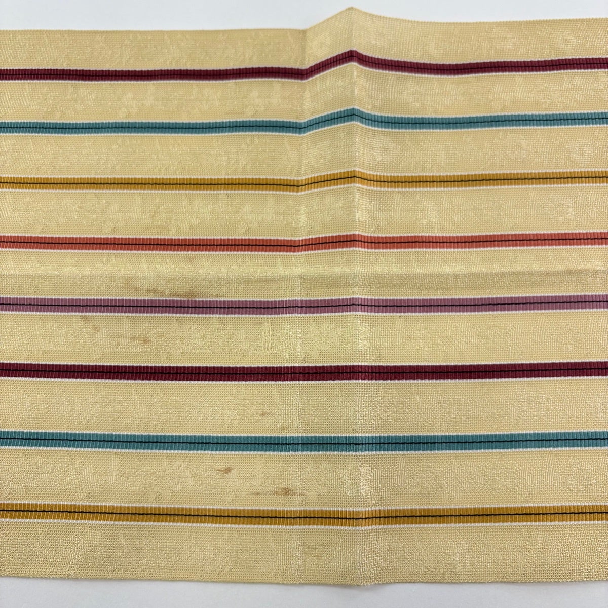30%OFF 【美品】 袋帯 秀品 縞 幾何学 箔 薄黄 六通 正絹 K30
