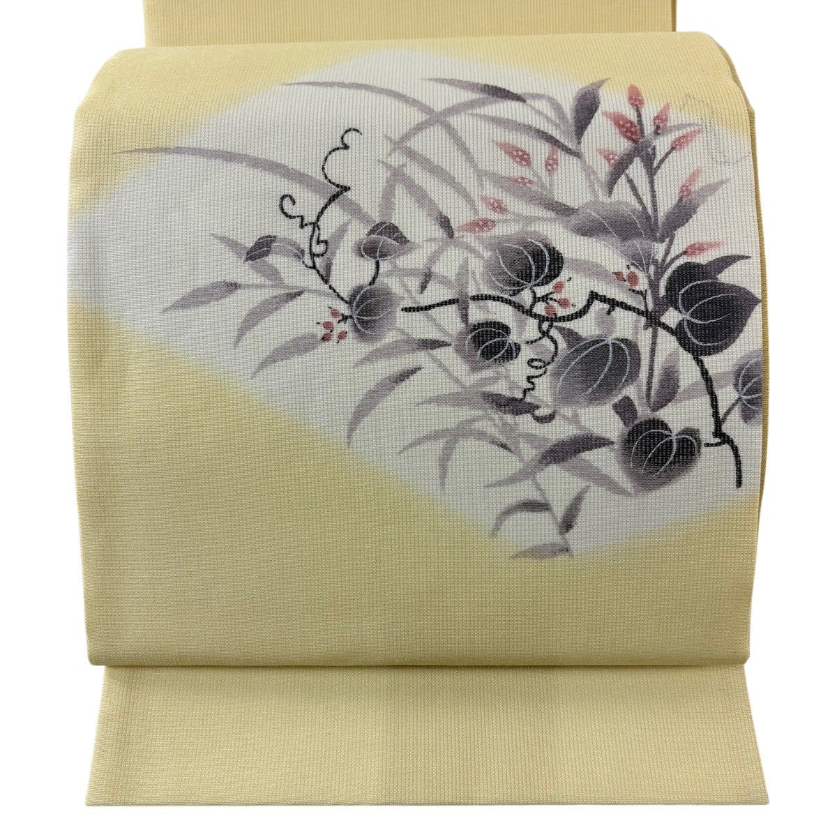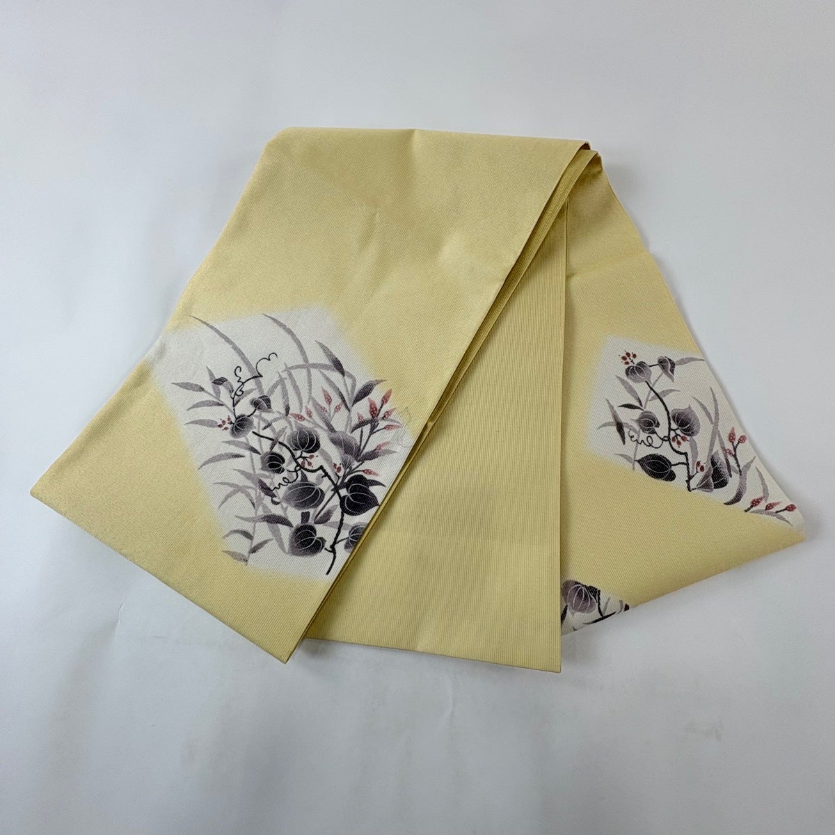 50%OFF 【美品】 名古屋帯 秀品 紬地 草花 相良刺繍 薄黄 正絹 K50