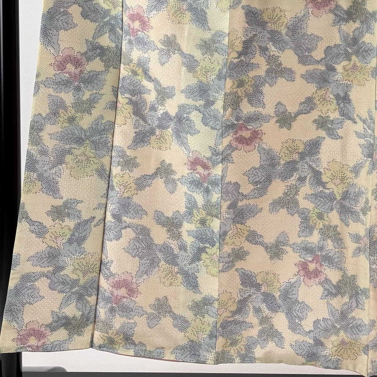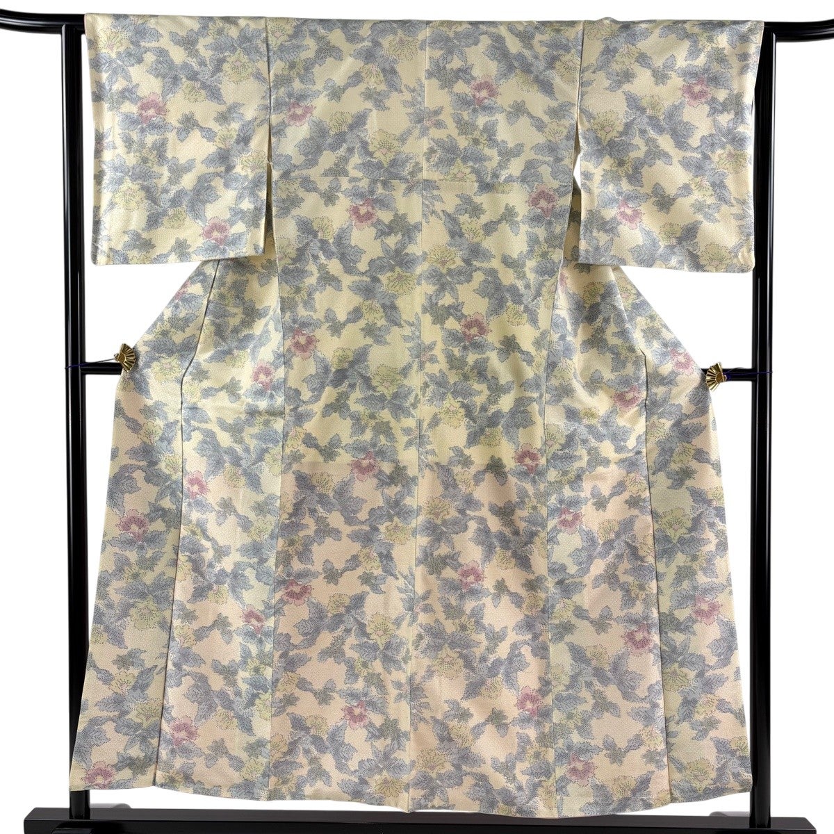 【美品】 紬 身丈154.5cm 裄丈63.5cm S 袷 草花 薄黄 正絹 優品