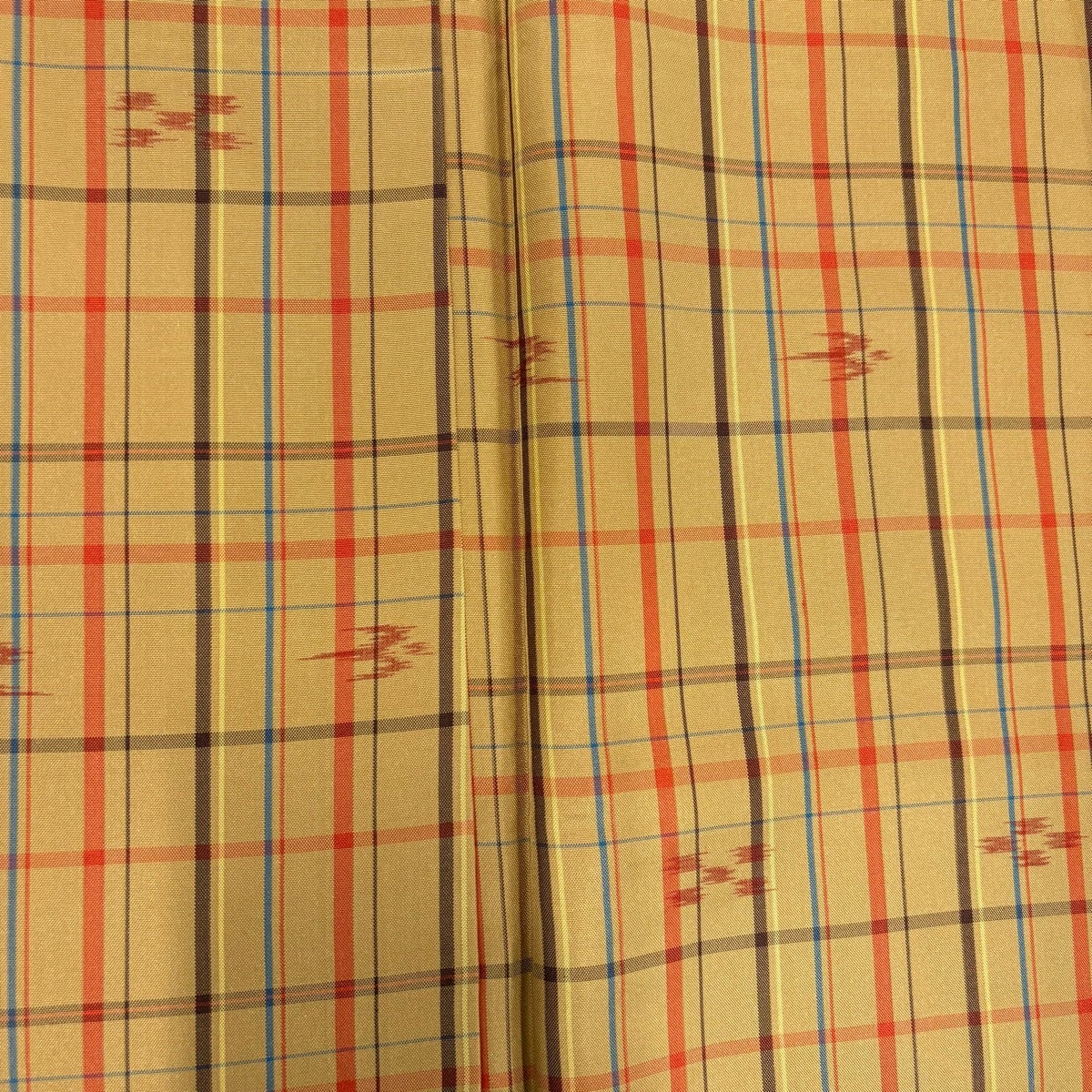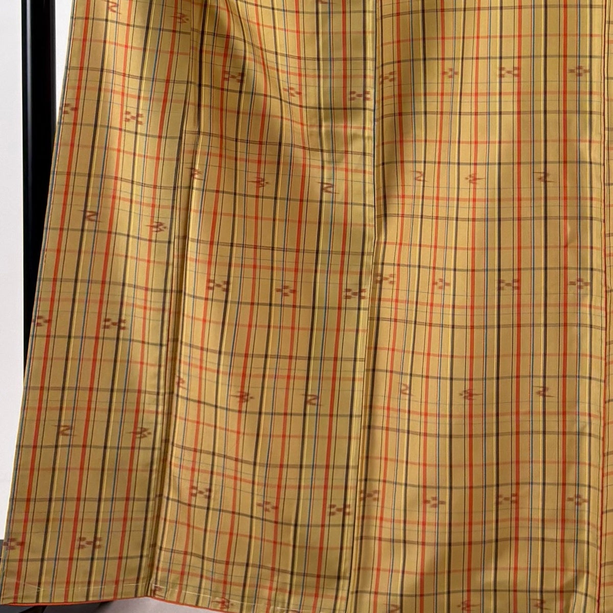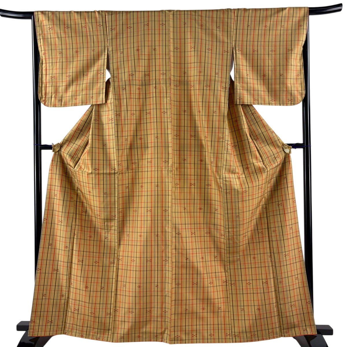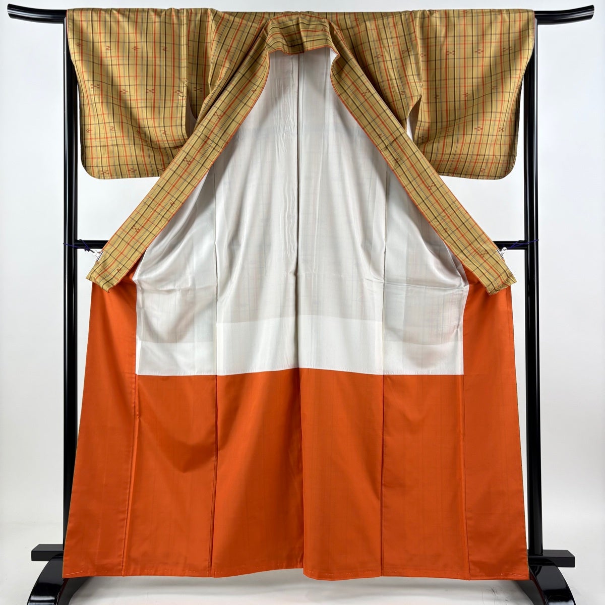 30%OFF 【美品】 紬 身丈164.5cm 裄丈66cm M 袷 格子 燕 薄黄土色 正絹 優品 K30
