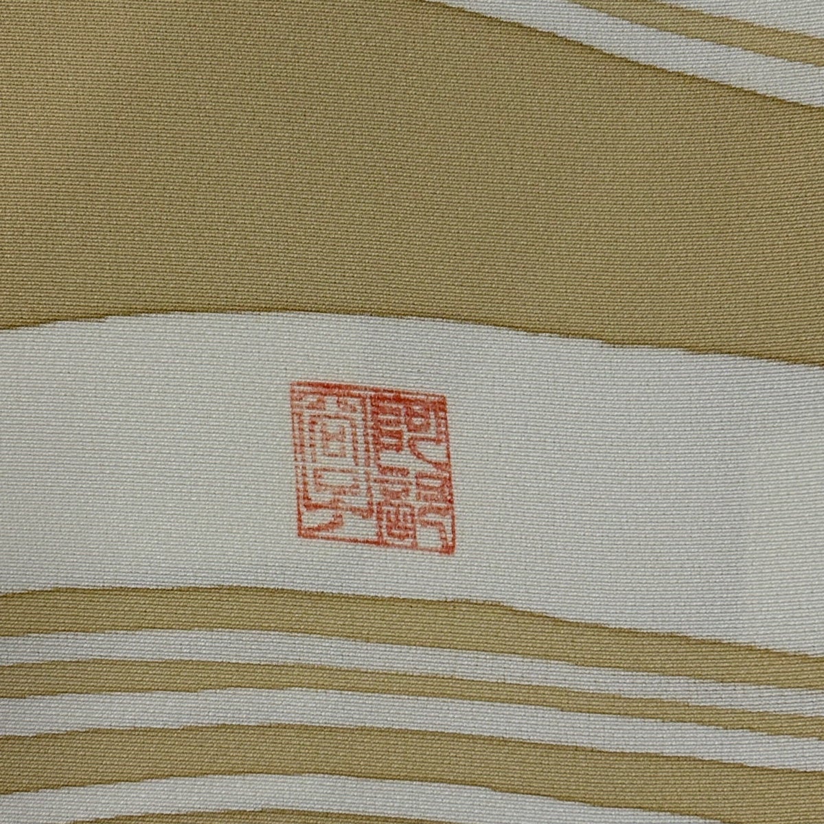 50%OFF 【美品】 袋帯 秀品 落款あり 山並み 地紋 金糸 箔 薄黄土色 お太鼓柄 正絹 K50