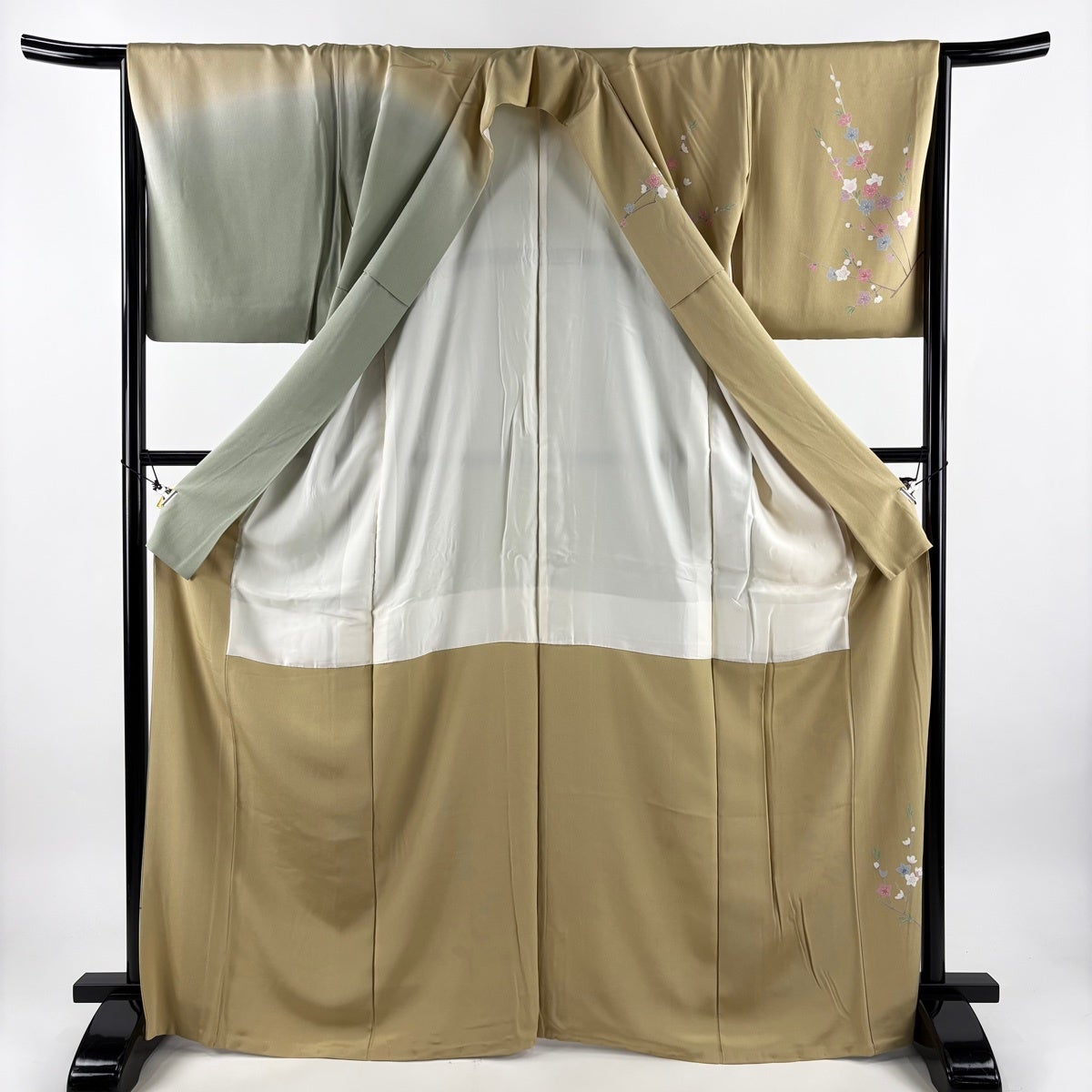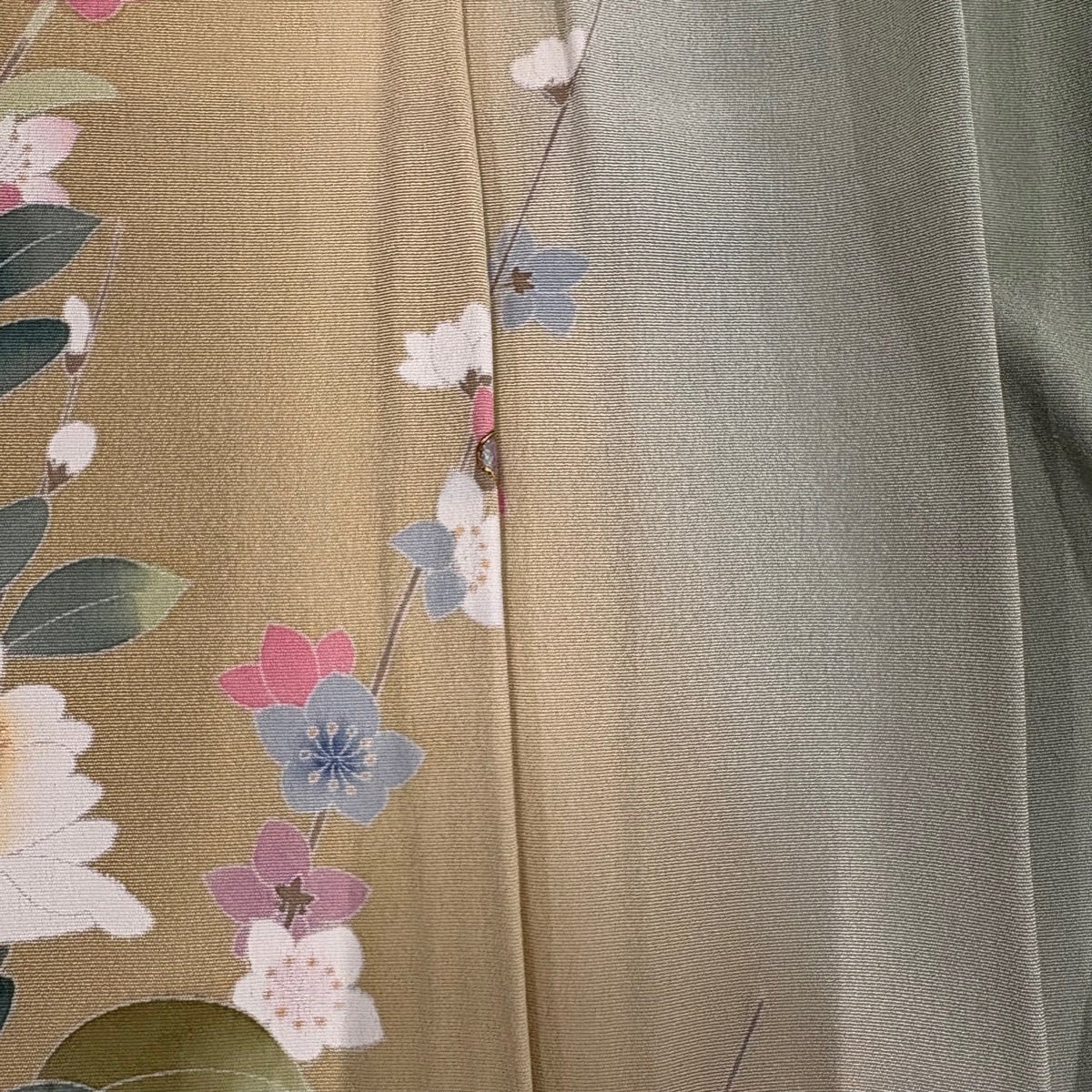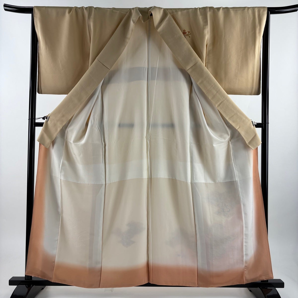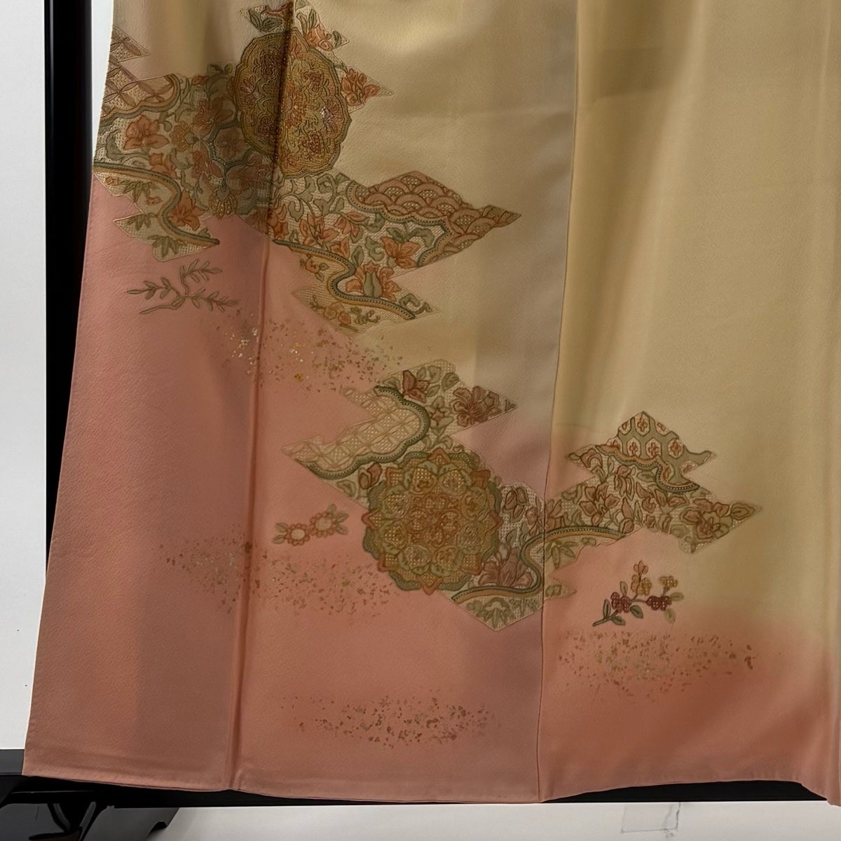 訪問着 身丈157cm 裄丈64cm M 袷 辻が花柄 地紋 染め分け ぼかし 薄黄土色 正絹 秀品