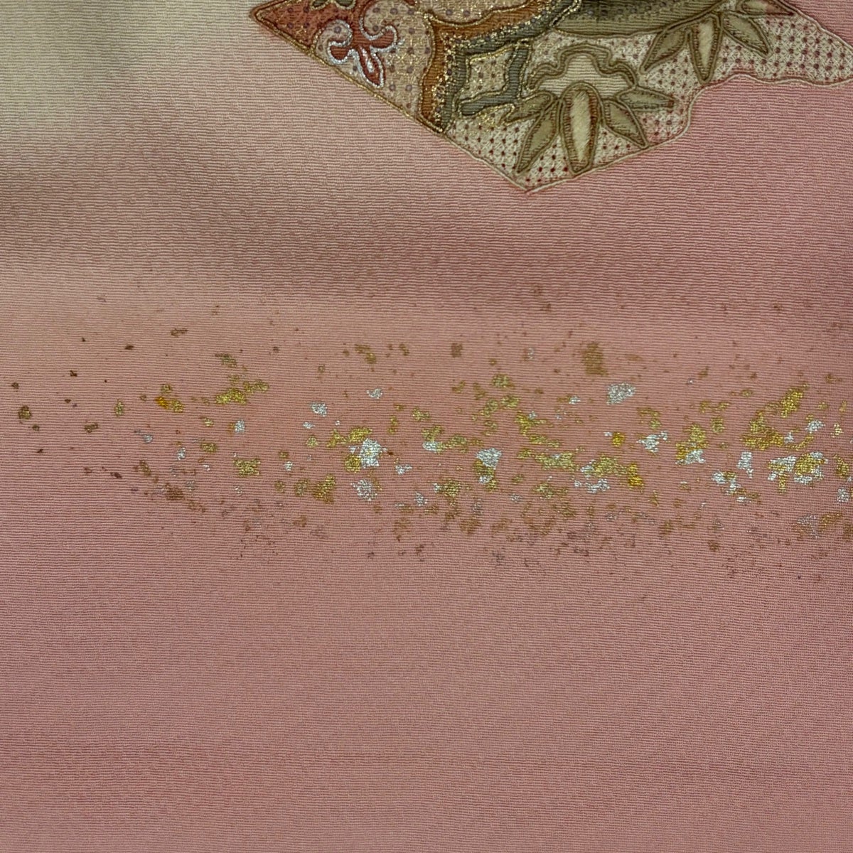 訪問着 身丈163cm 裄丈67cm M 袷 落款あり 幾何学模様 金銀彩 ぼかし 薄黄土色 正絹 秀品