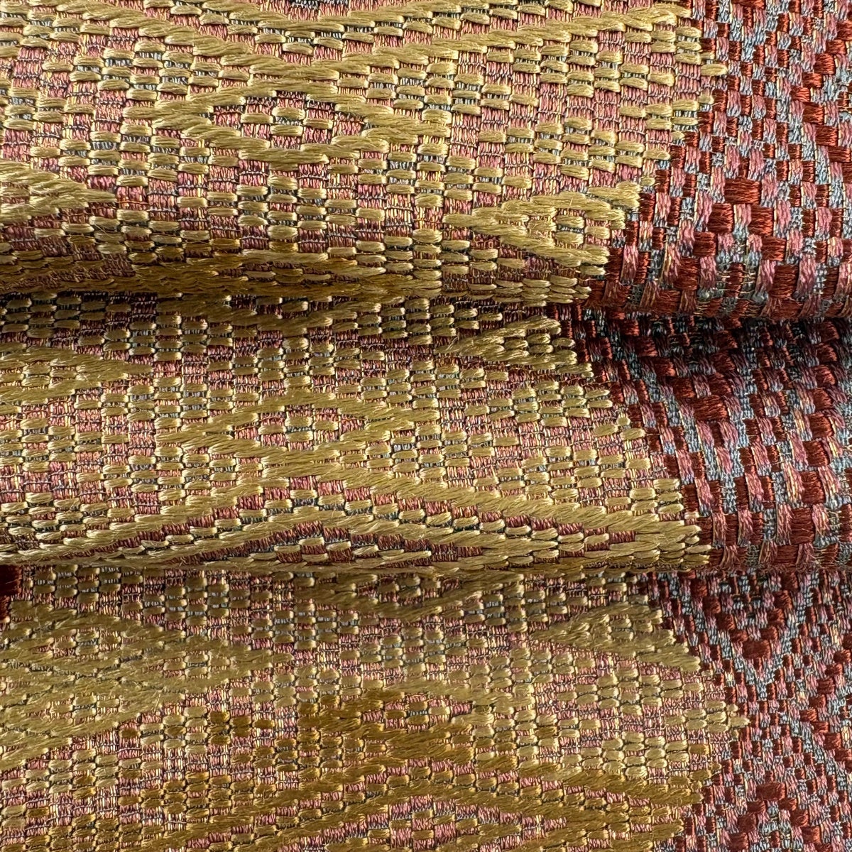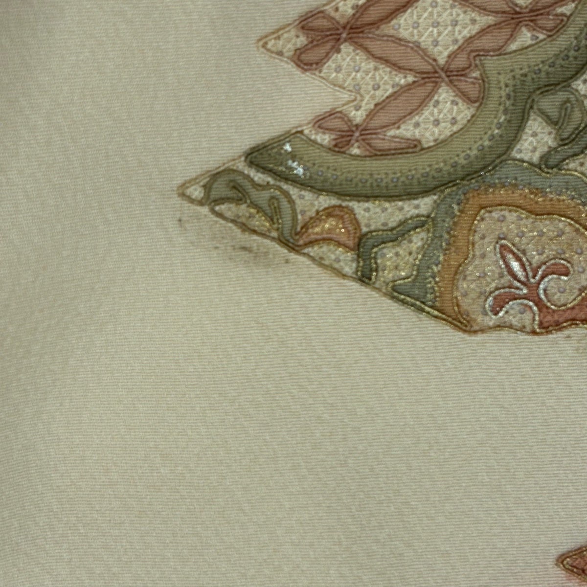 30%OFF 【美品】 袋帯 秀品 正倉院唐花文錦 蜀江文 切りばめ 薄黄土色 お太鼓柄 正絹 K30