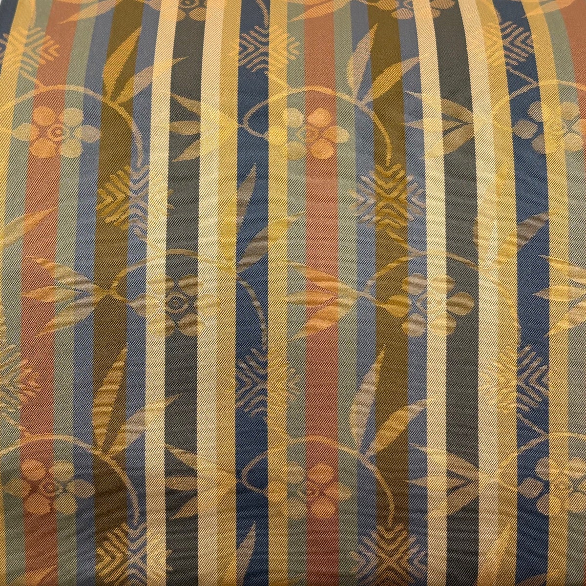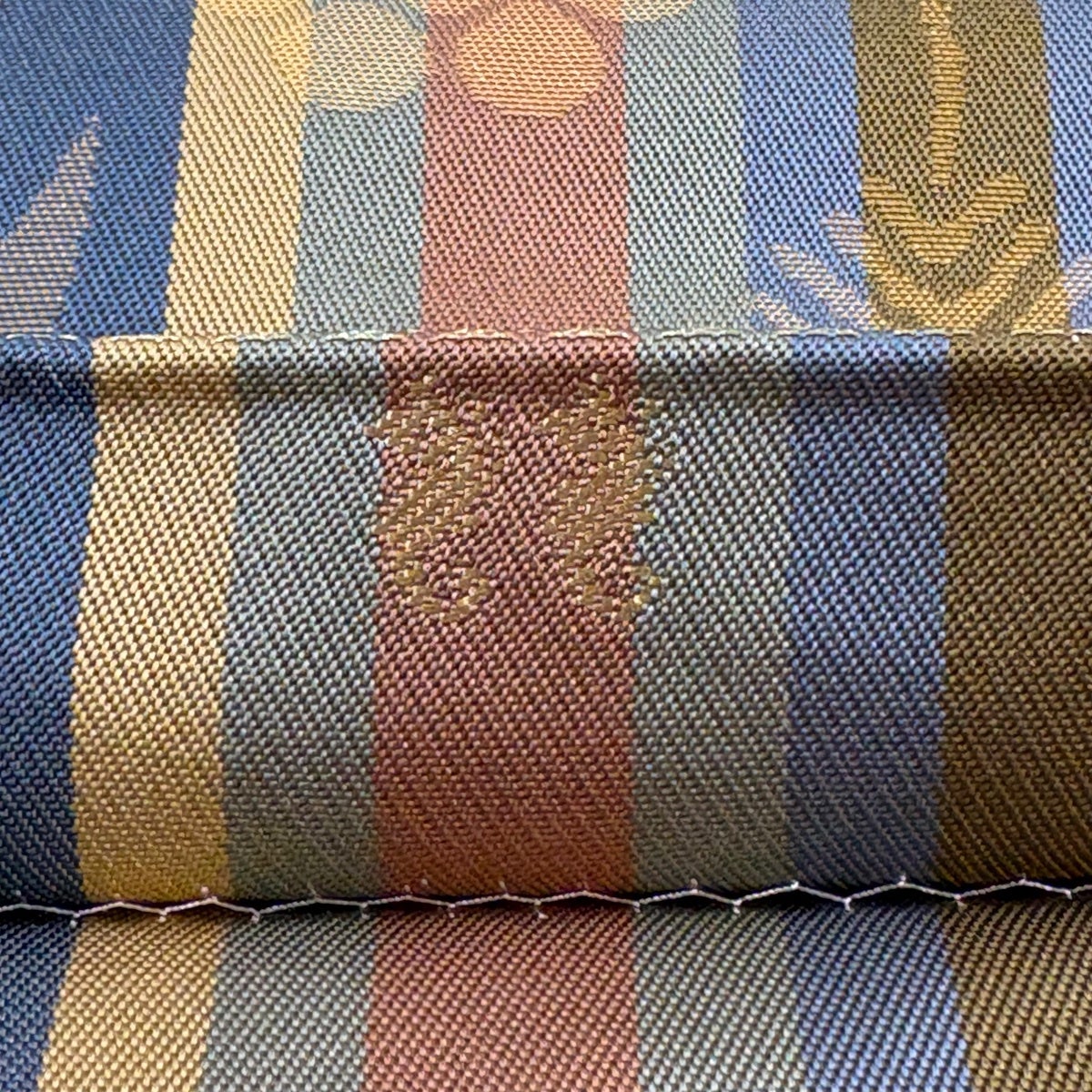30%OFF 【美品】 袋帯 秀品 よろけ縞 幾何学模様 金糸 ラメ糸 薄黄土色 全通 正絹 K30