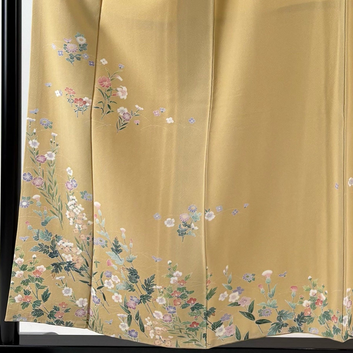 30%OFF 付下げ 身丈155cm 裄丈63cm S 袷 草花 霞 薄黄土色 正絹 秀品 一つ紋 K30