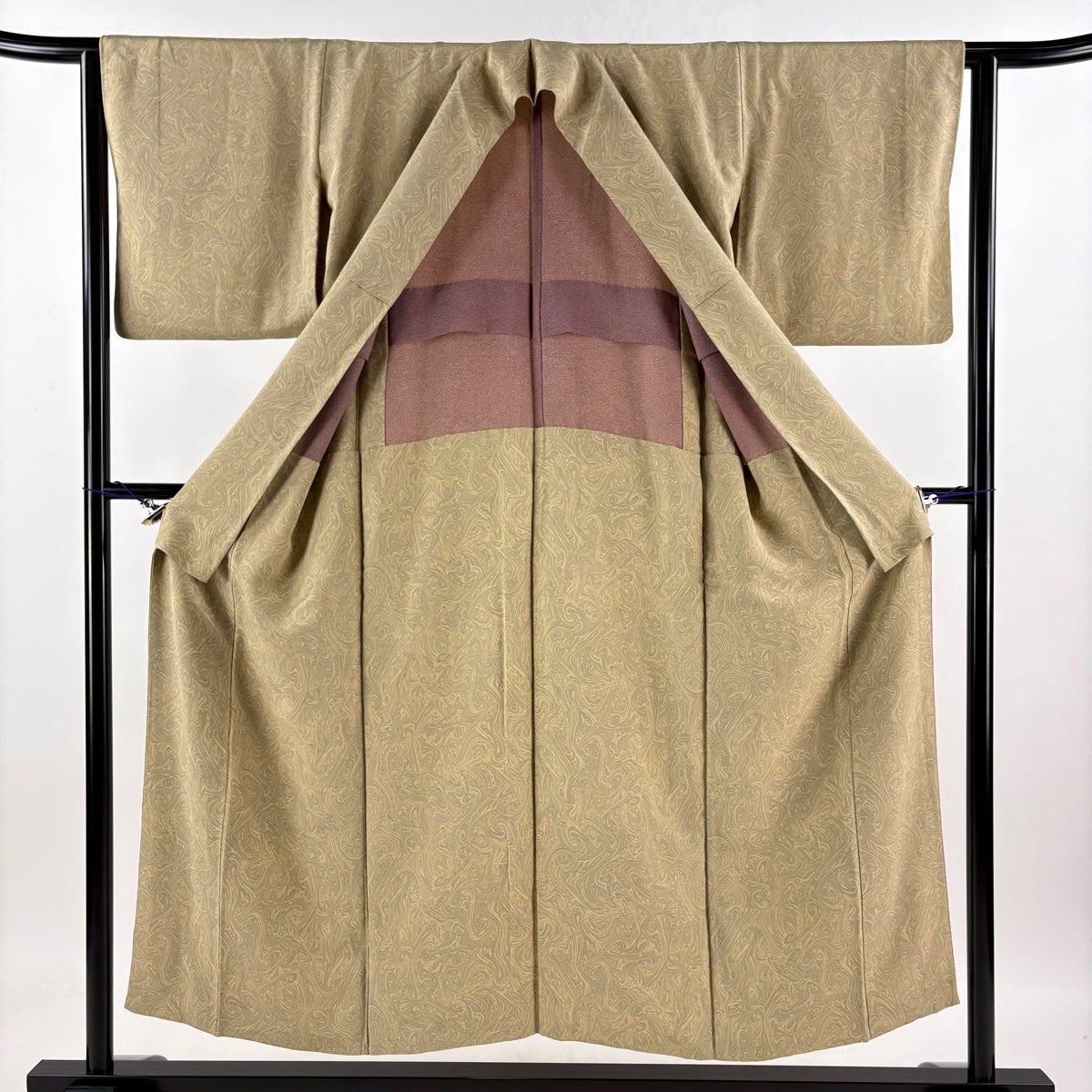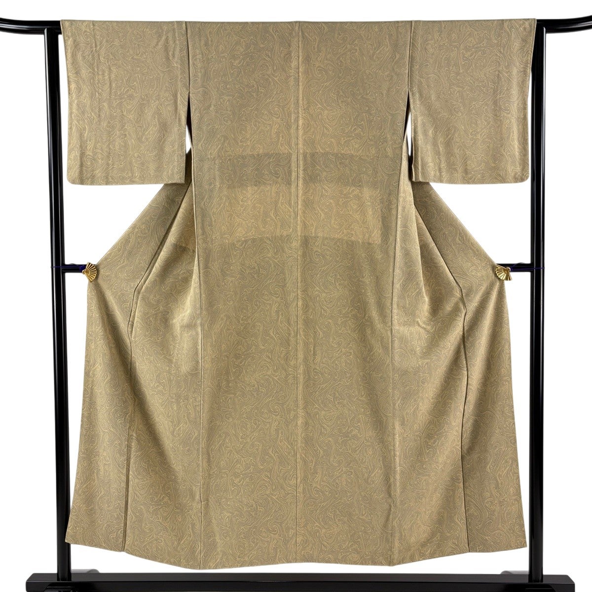 50%OFF 色無地 身丈157.5cm 裄丈64cm M 単衣 地紋 薄黄土色 正絹 秀品 一つ紋 K50