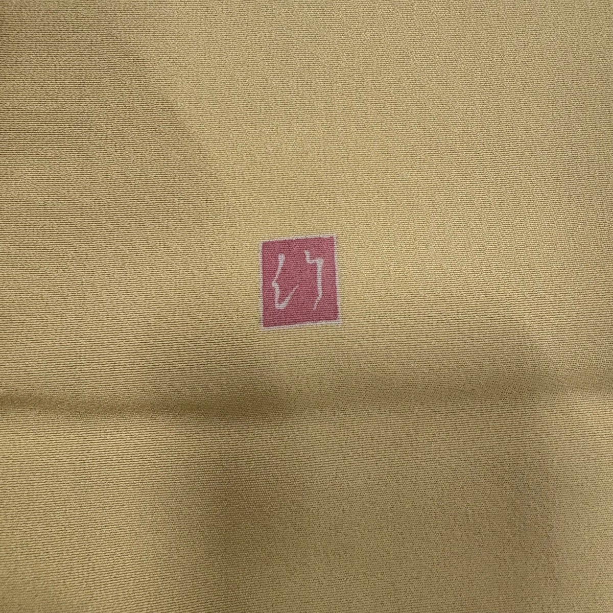 付下げ 身丈155cm 裄丈63cm S 袷 草花 霞 薄黄土色 正絹 秀品 一つ紋