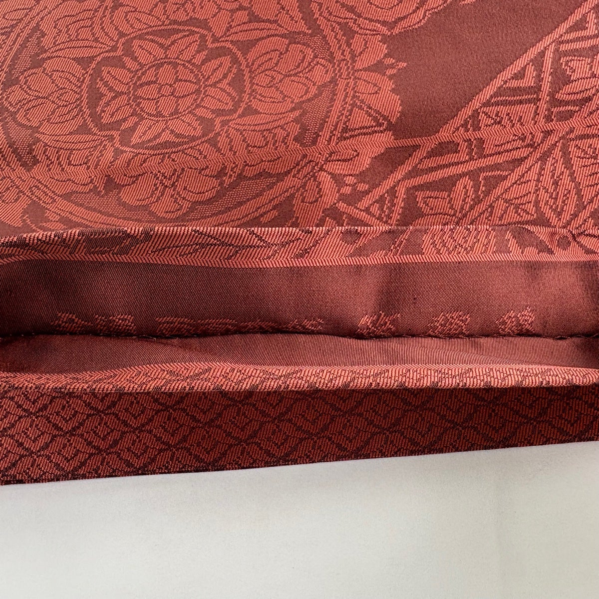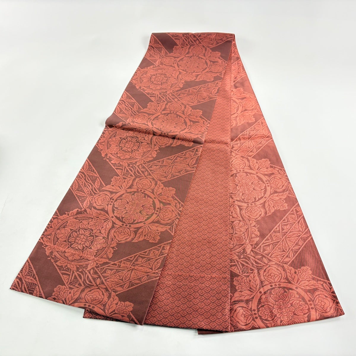 袋帯 名品 幾何学 赤茶 全通 正絹