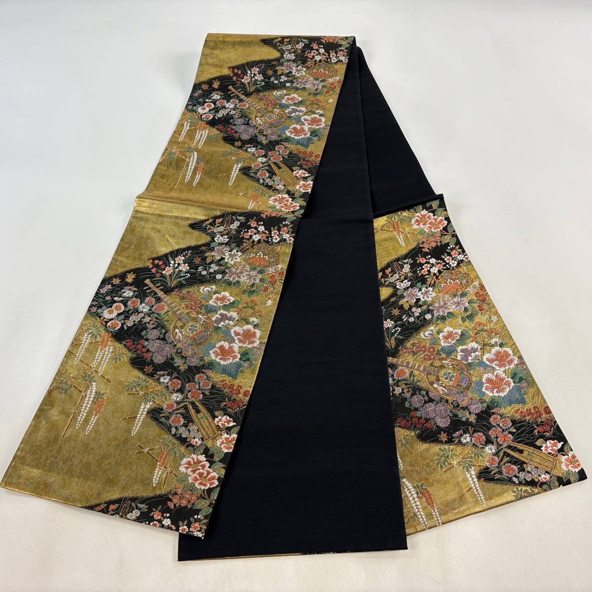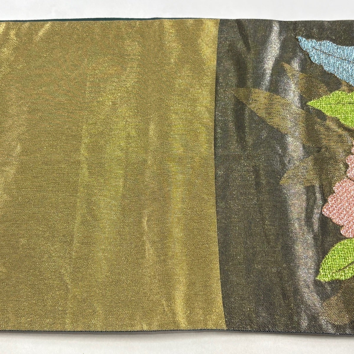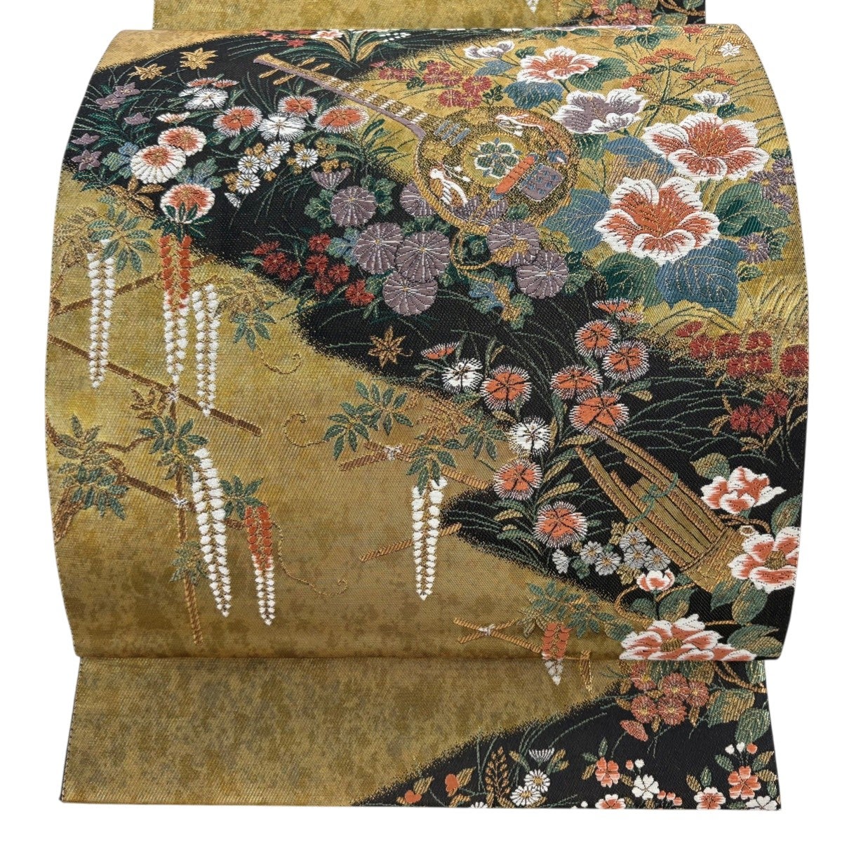 【美品】 袋帯 秀品 華文 草花 箔 金糸 金色 六通 正絹