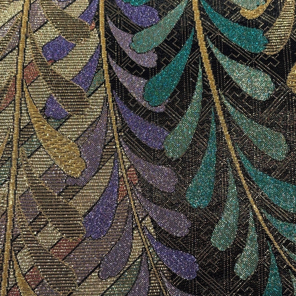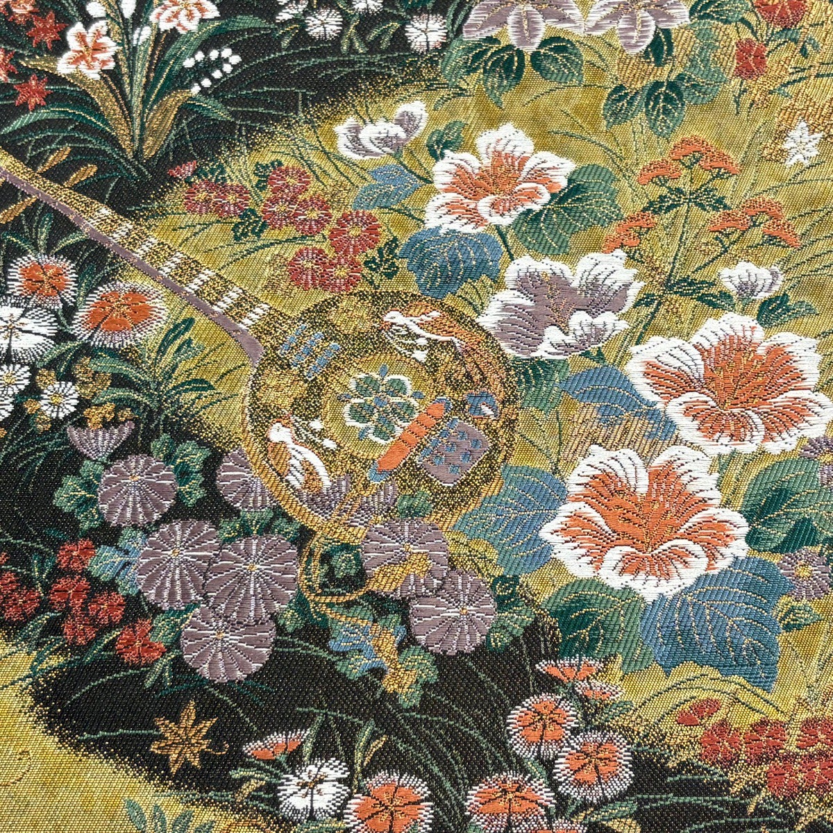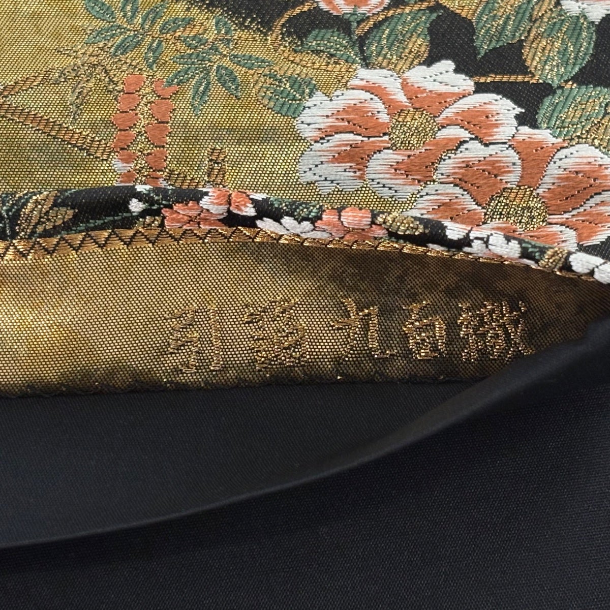 【美品】 袋帯 秀品 鳳凰 草花 箔 唐織 黒 六通 正絹