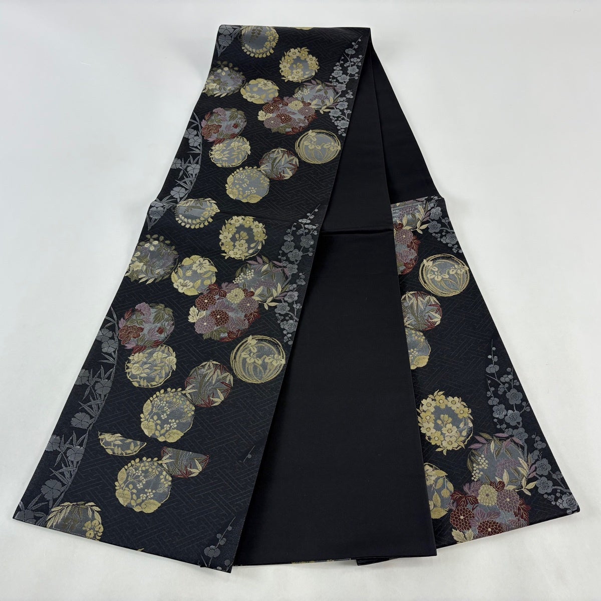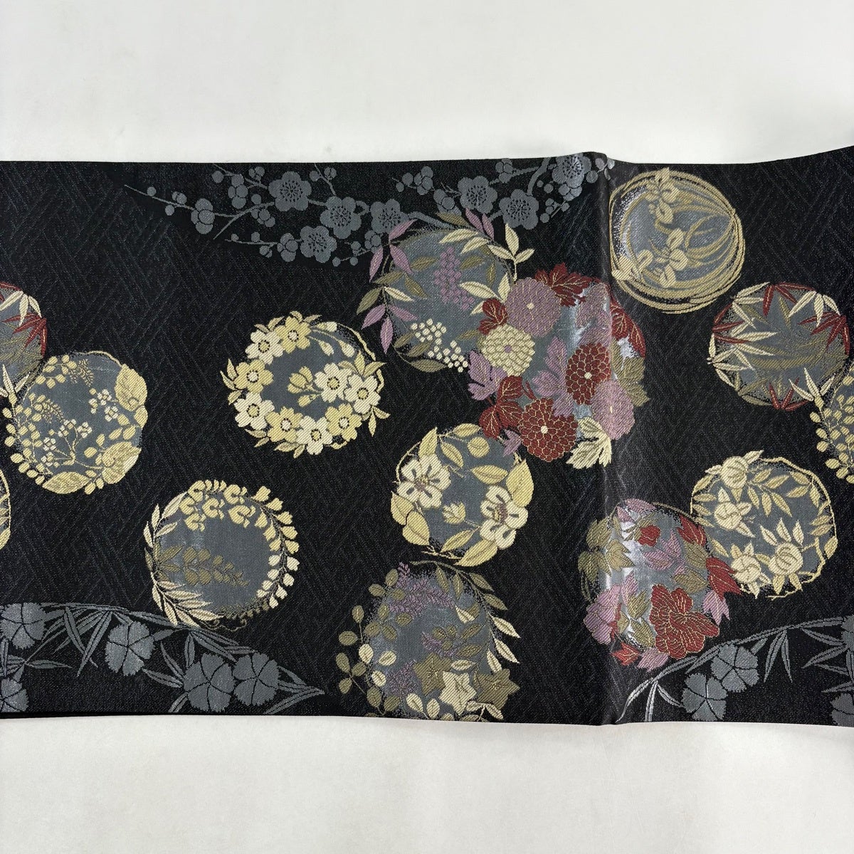 30%OFF 【美品】 袋帯 秀品 扇面 枝梅 唐織 箔 黒 六通 正絹 K30