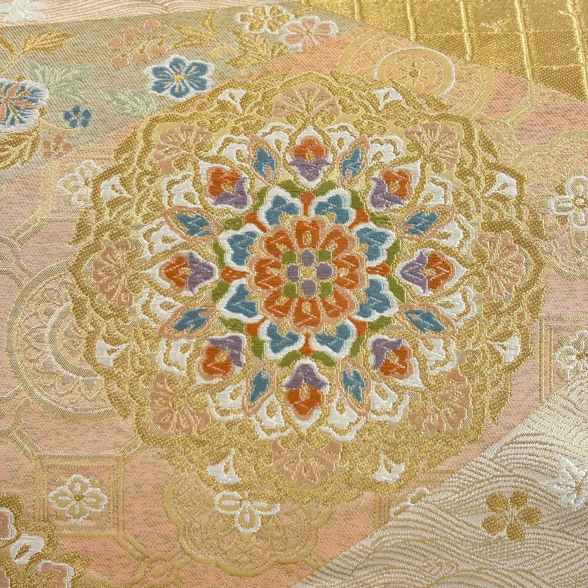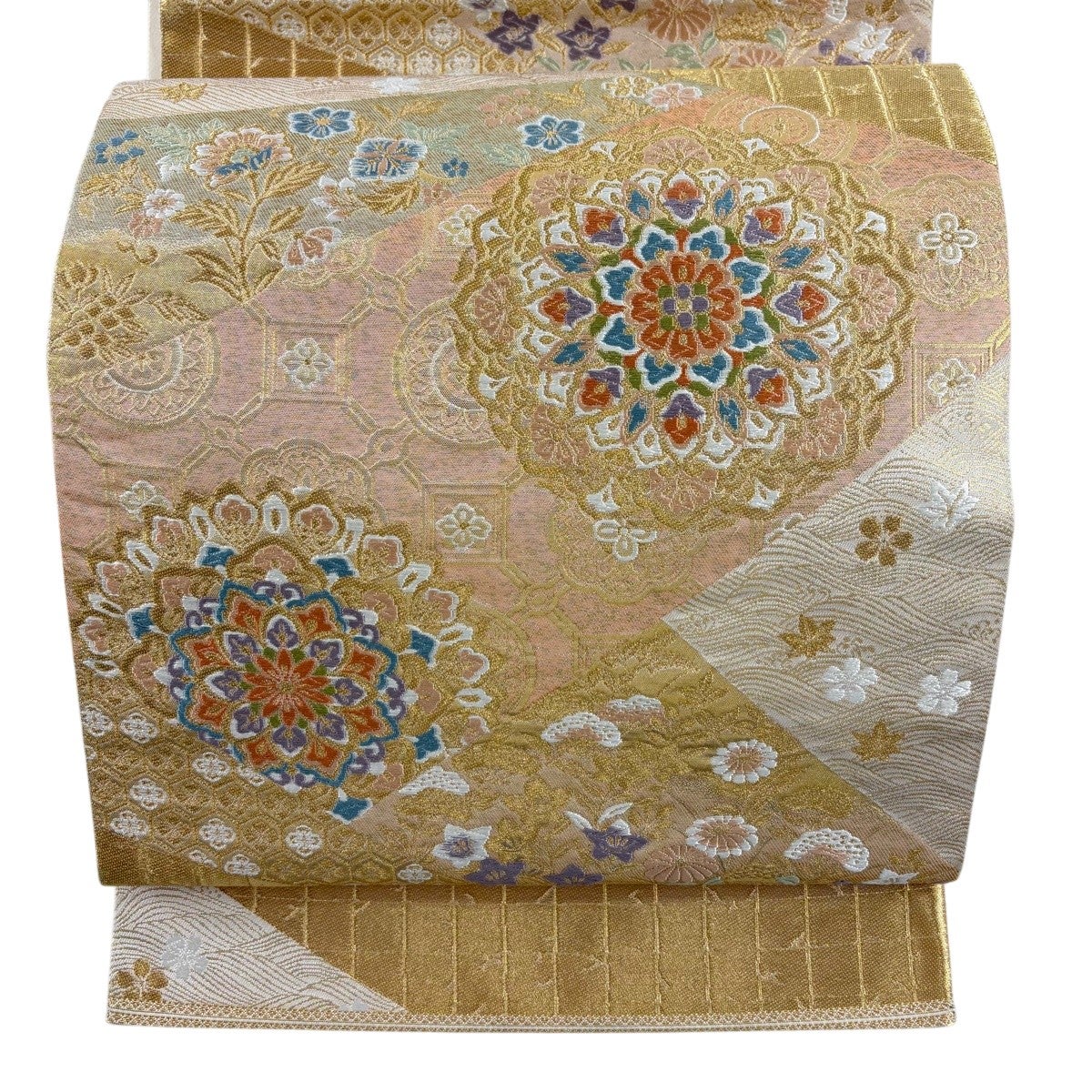 30%OFF 袋帯 秀品 菊 箔 金糸 ピンクベージュ 六通 正絹 K30