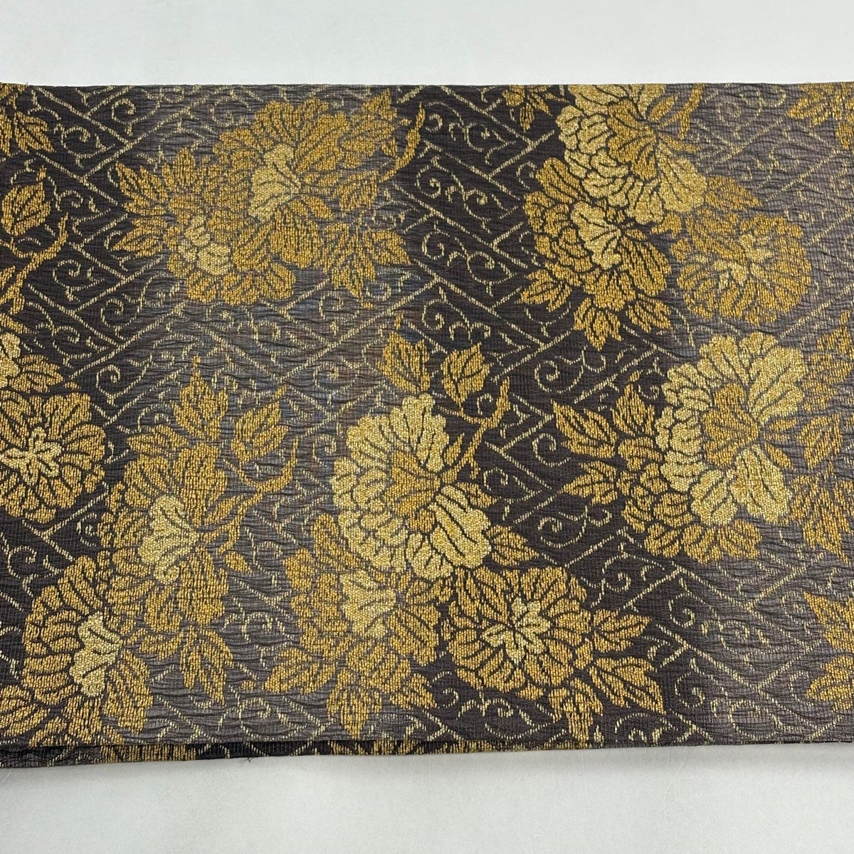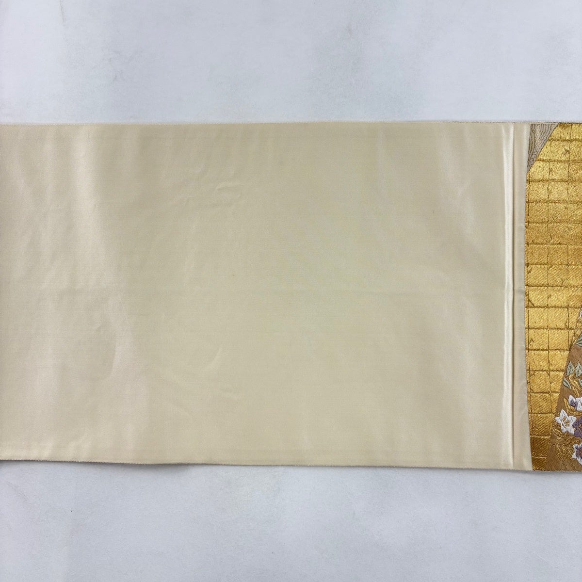 30%OFF 【美品】 袋帯 秀品 格子 草花 金糸 箔 金色 六通 正絹 K30